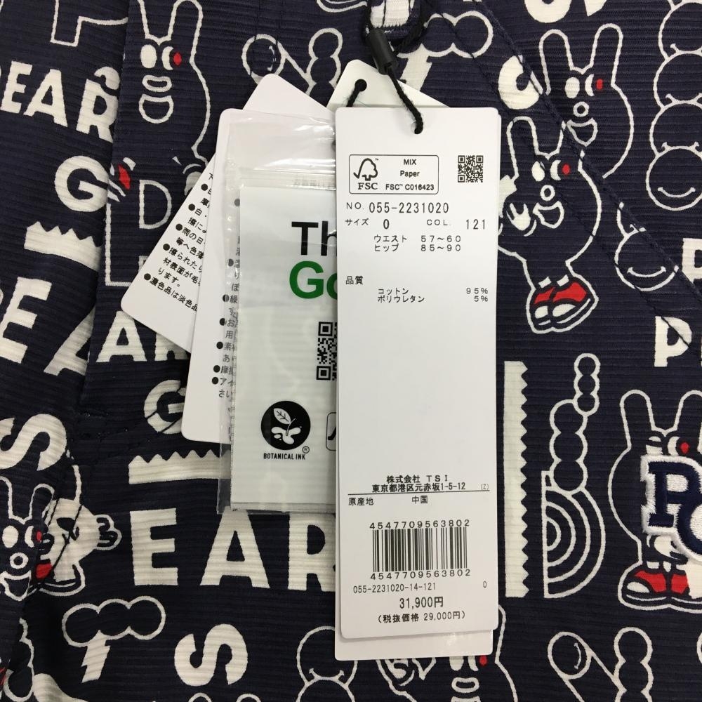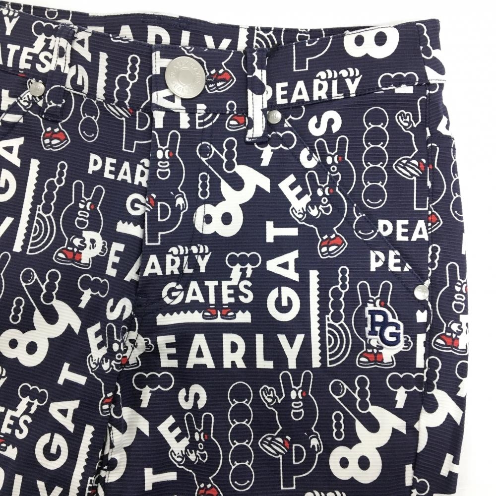 【新品】パーリーゲイツ パンツ ネイビー×白 ロゴ総柄 どうしちゃったPG レディース 0(S) ゴルフウェア PEARLY GATES
