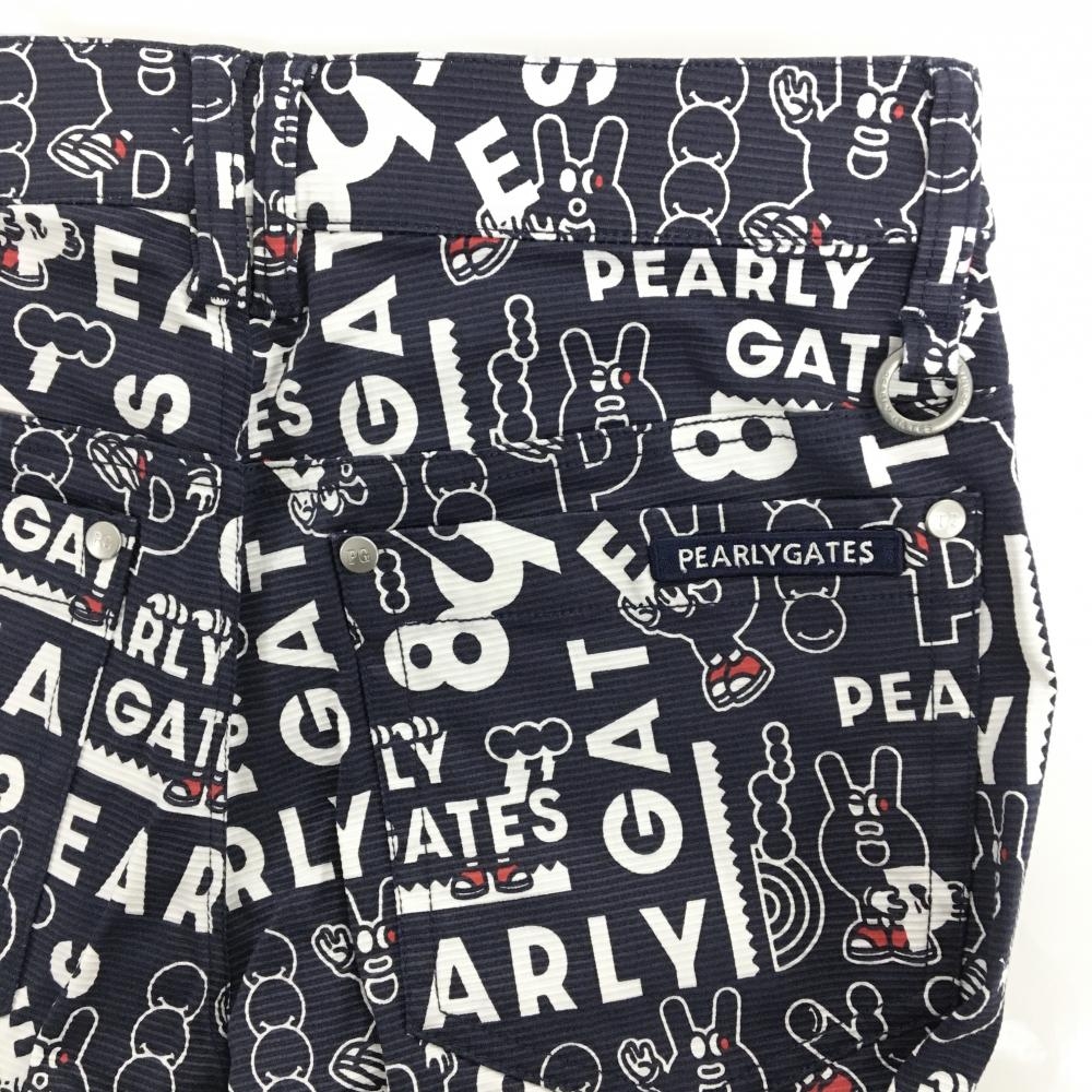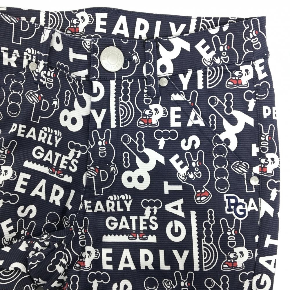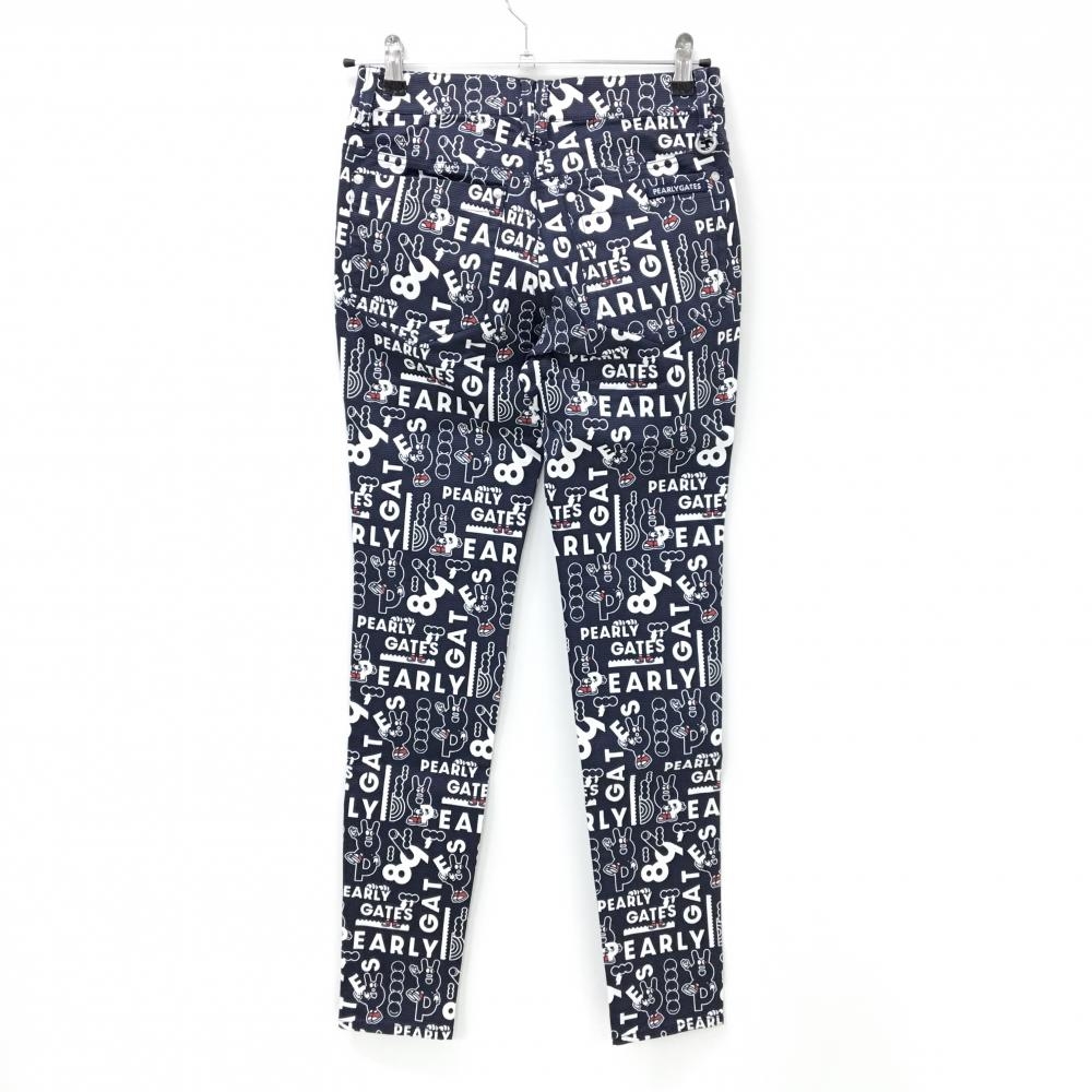 【新品】パーリーゲイツ パンツ ネイビー×白 ロゴ総柄 どうしちゃったPG レディース 0(S) ゴルフウェア PEARLY GATES