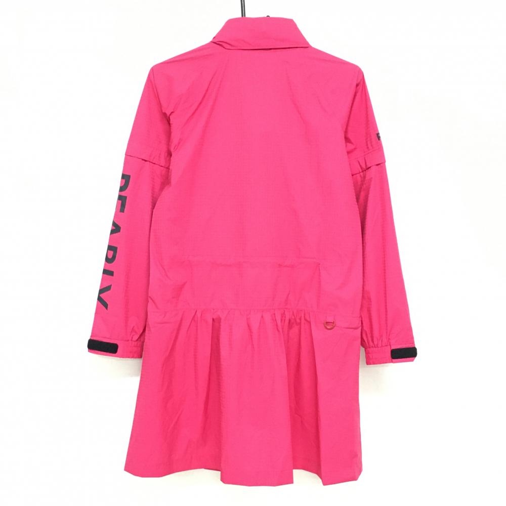 【新品】パーリーゲイツ 2WAYレインワンピース ピンク×ネイビー 地模様 袖着脱可 フード付 レディース 0(S) ゴルフウェア PEARLY GATES