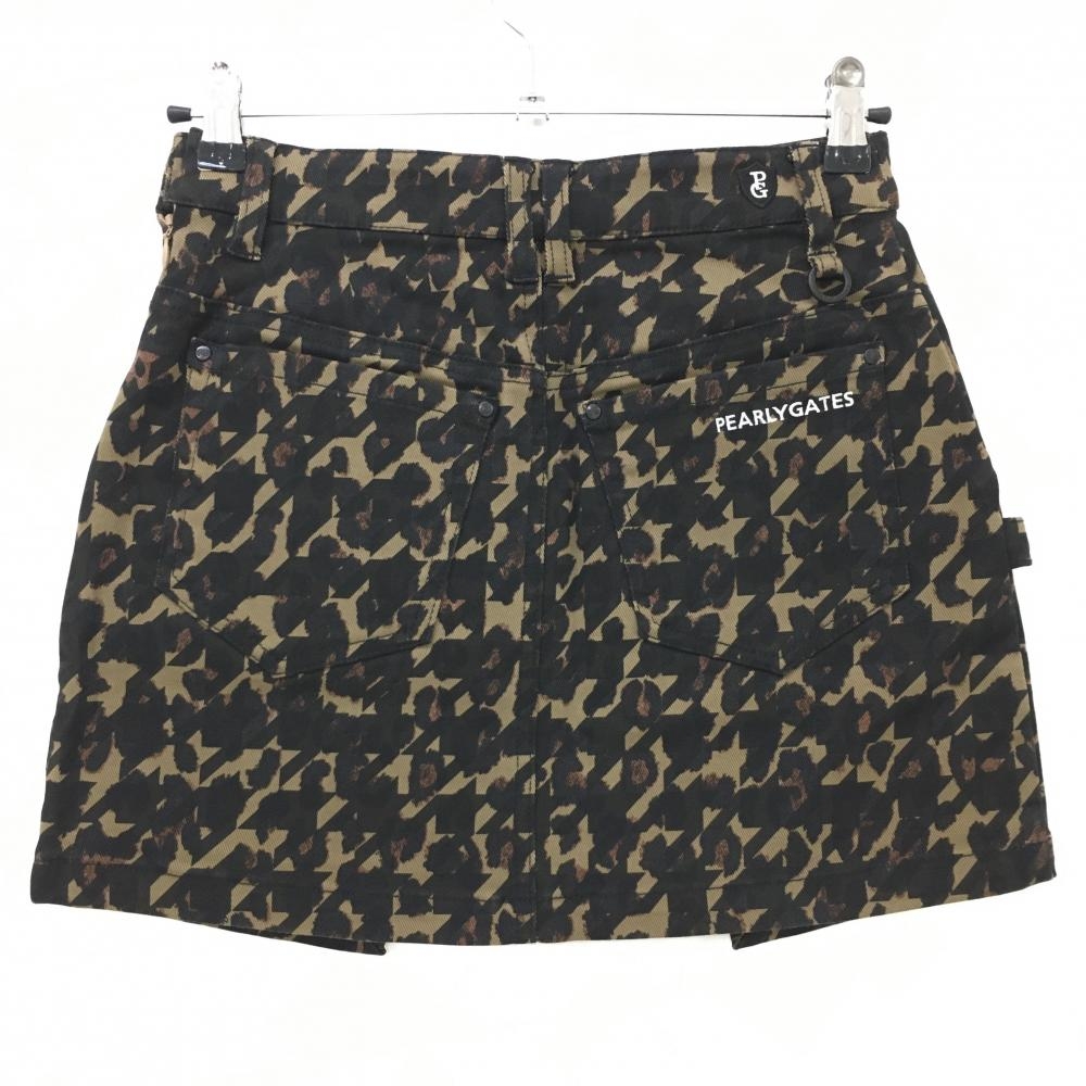 【新品】パーリーゲイツ スカート ベージュ×黒 千鳥柄 レオパード ストレッチ レディース 00(XS) ゴルフウェア PEARLY GATES