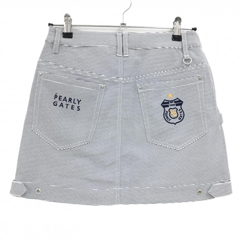 【新品】パーリーゲイツ スカート 白×ネイビー ボーダー ロゴ刺しゅう レディース 0(S) ゴルフウェア PEARLY GATES