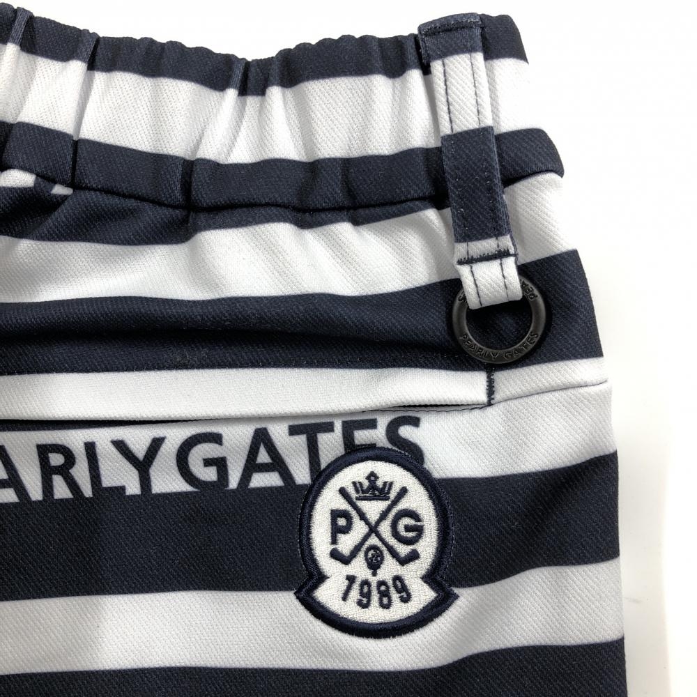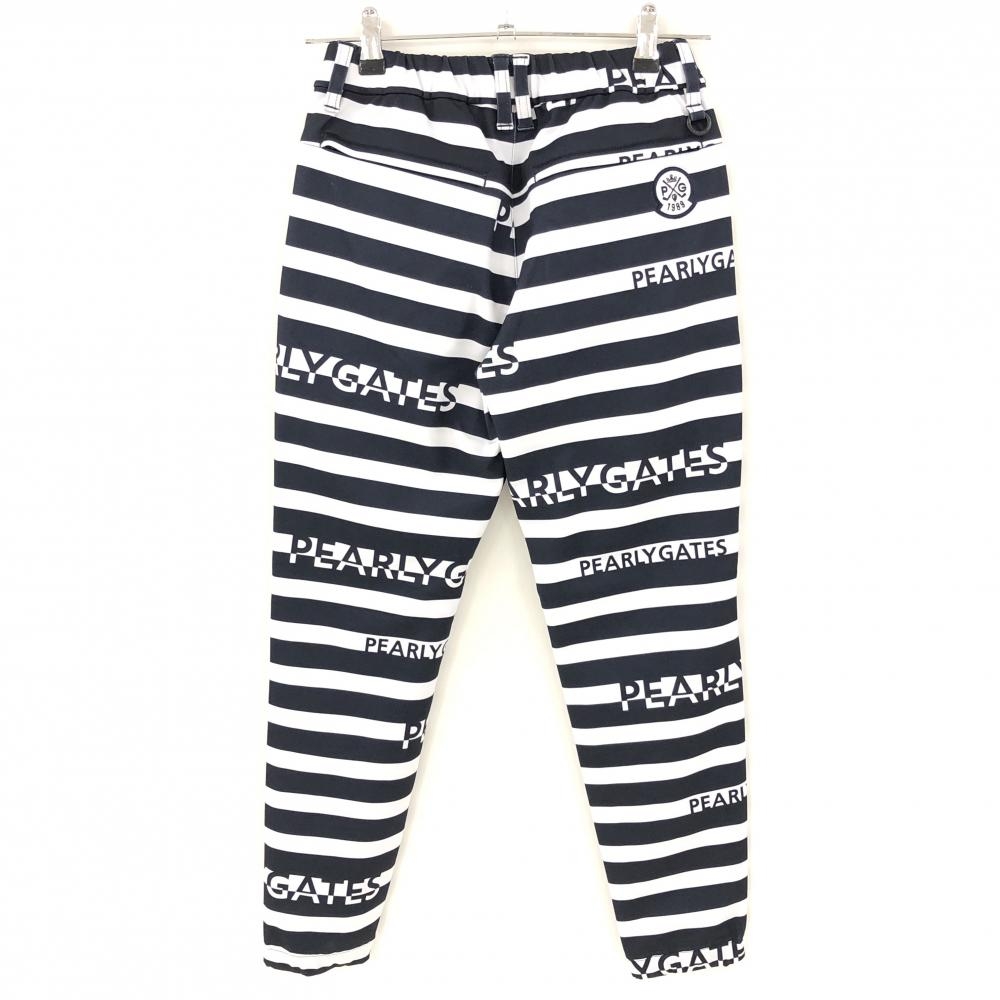 【新品】パーリーゲイツ ジョガーパンツ 白×ネイビー ボーダー 裏微起毛 ウエストゴム レディース 00(XS) ゴルフウェア PEARLY GATES