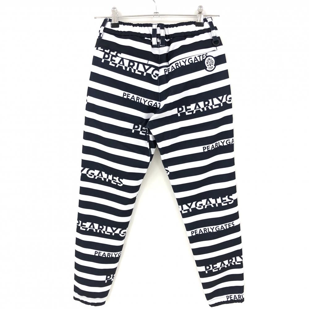 【新品】パーリーゲイツ ジョガーパンツ 白×ネイビー ボーダー 裏微起毛 ウエストゴム レディース 00(XS) ゴルフウェア PEARLY GATES