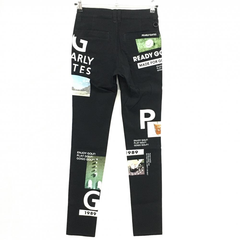 【新品】パーリーゲイツ パンツ 黒×白 写真風 PGニコちゃん ロゴ刺しゅう レディース 00(XS) ゴルフウェア PEARLY GATES