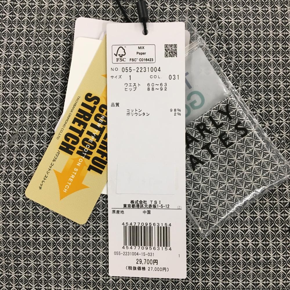 【新品】パーリーゲイツ パンツ 黒×白 総柄 ロゴ刺しゅう ストレッチ レディース 1(M) ゴルフウェア PEARLY GATES