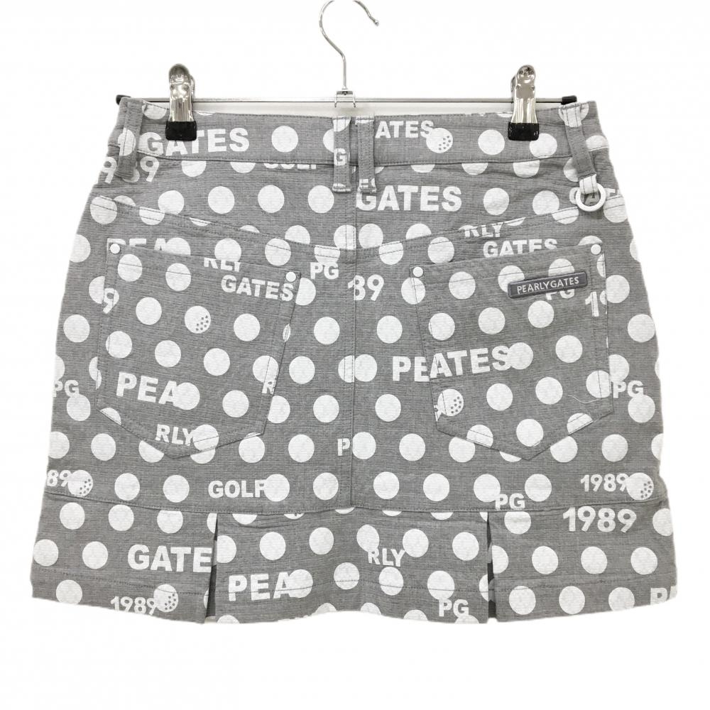 【新品】パーリーゲイツ スカート グレー×白 ドット柄 ロゴ刺しゅう ストレッチ レディース 1(M) ゴルフウェア PEARLY GATES