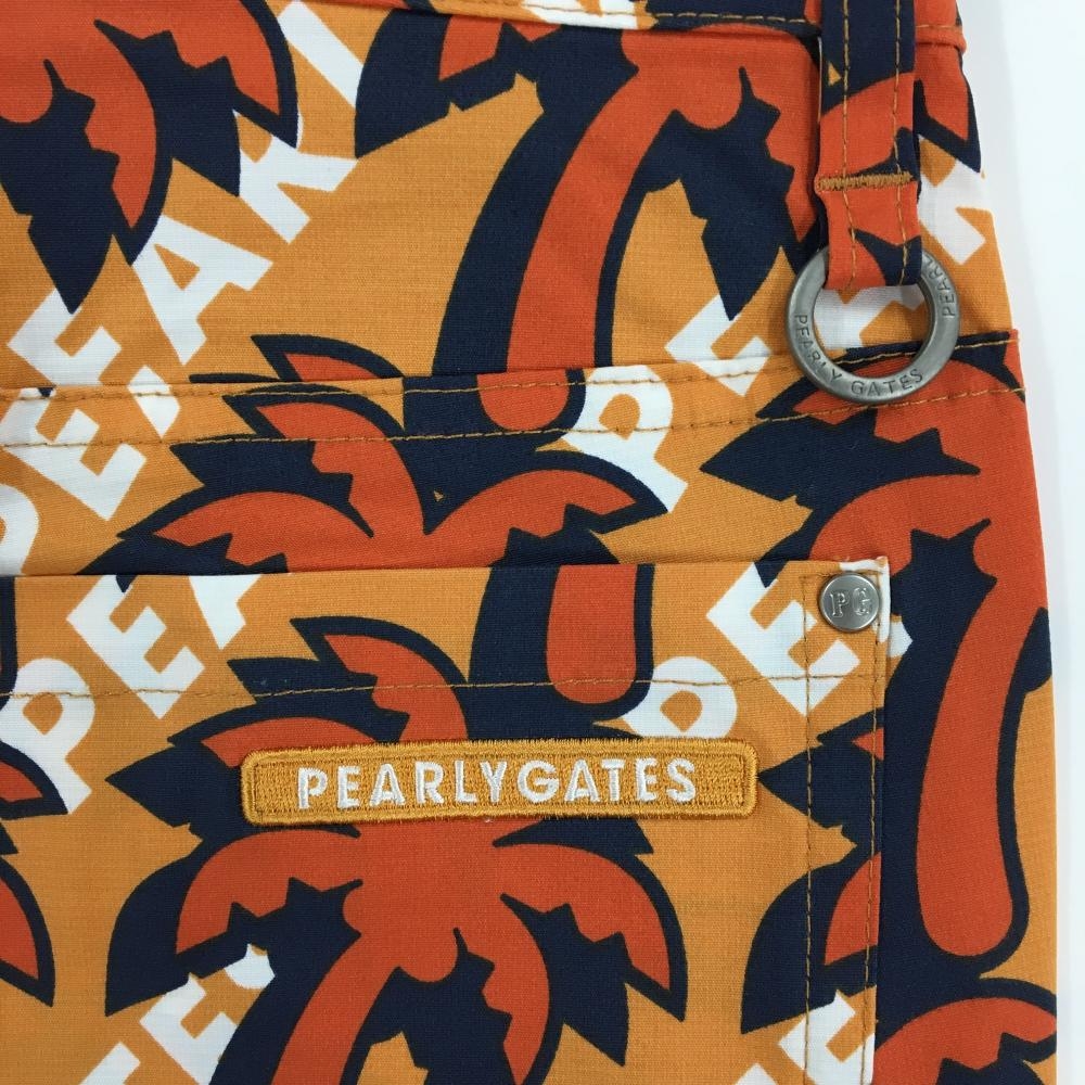 【新品】パーリーゲイツ パンツ ライトオレンジ×オレンジ ヤシの木柄 ロゴ刺しゅう 接触冷感 レディース 0(S) ゴルフウェア PEARLY GATES