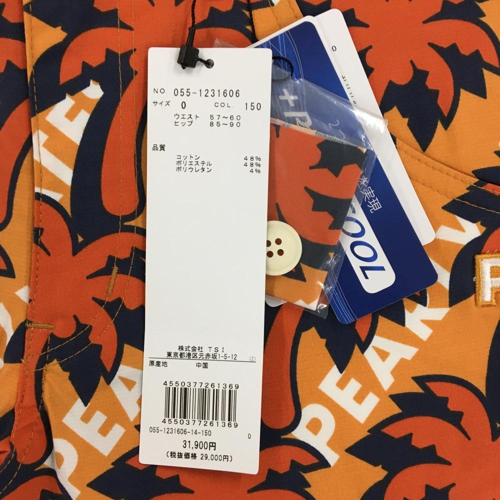【新品】パーリーゲイツ パンツ ライトオレンジ×オレンジ ヤシの木柄 ロゴ刺しゅう 接触冷感 レディース 0(S) ゴルフウェア PEARLY GATES