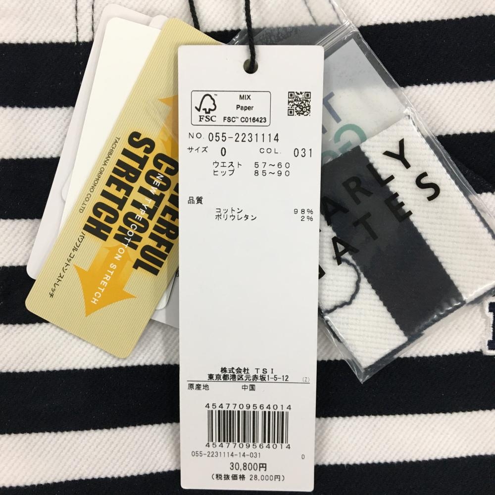 【新品】パーリーゲイツ パンツ 白×ネイビー ボーダー 表微起毛 ロゴ刺しゅう レディース 0(S) ゴルフウェア PEARLY GATES