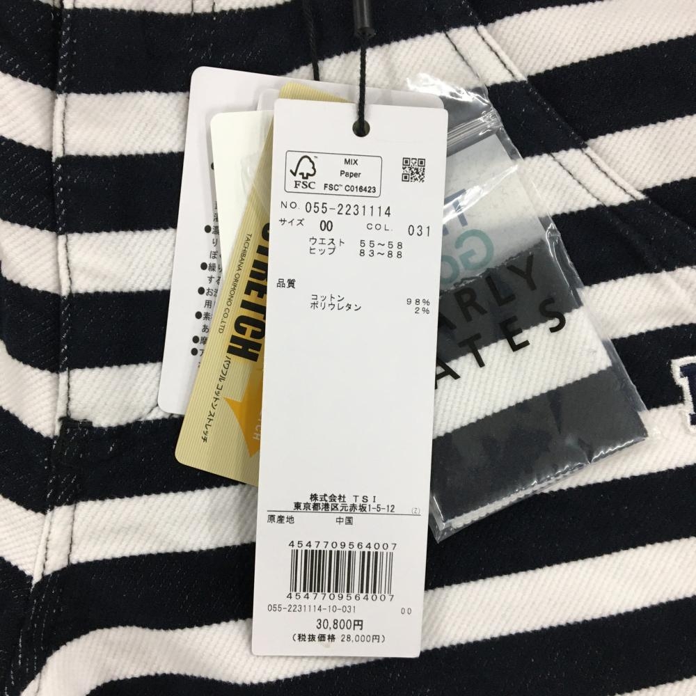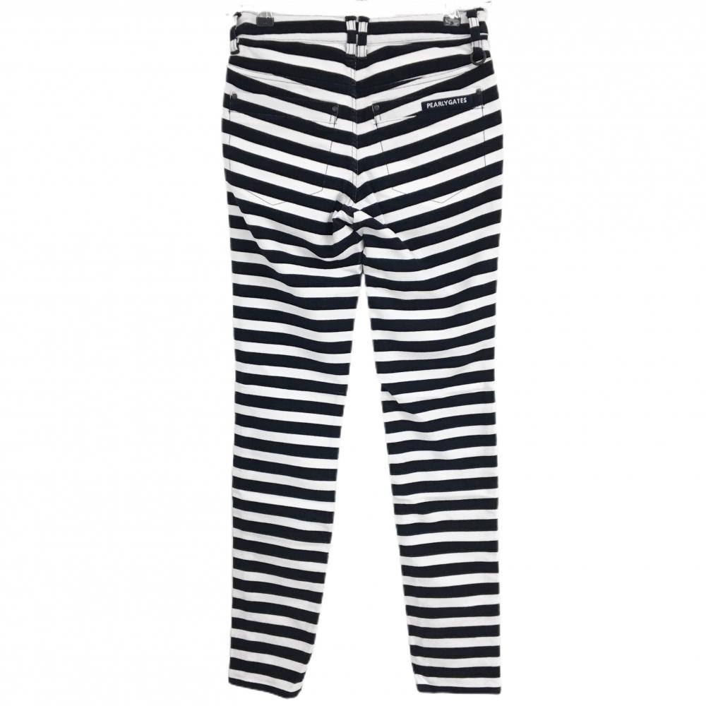 【新品】パーリーゲイツ パンツ 白×ネイビー ボーダー 表微起毛 ロゴ刺しゅう レディース 00(XS) ゴルフウェア PEARLY GATES