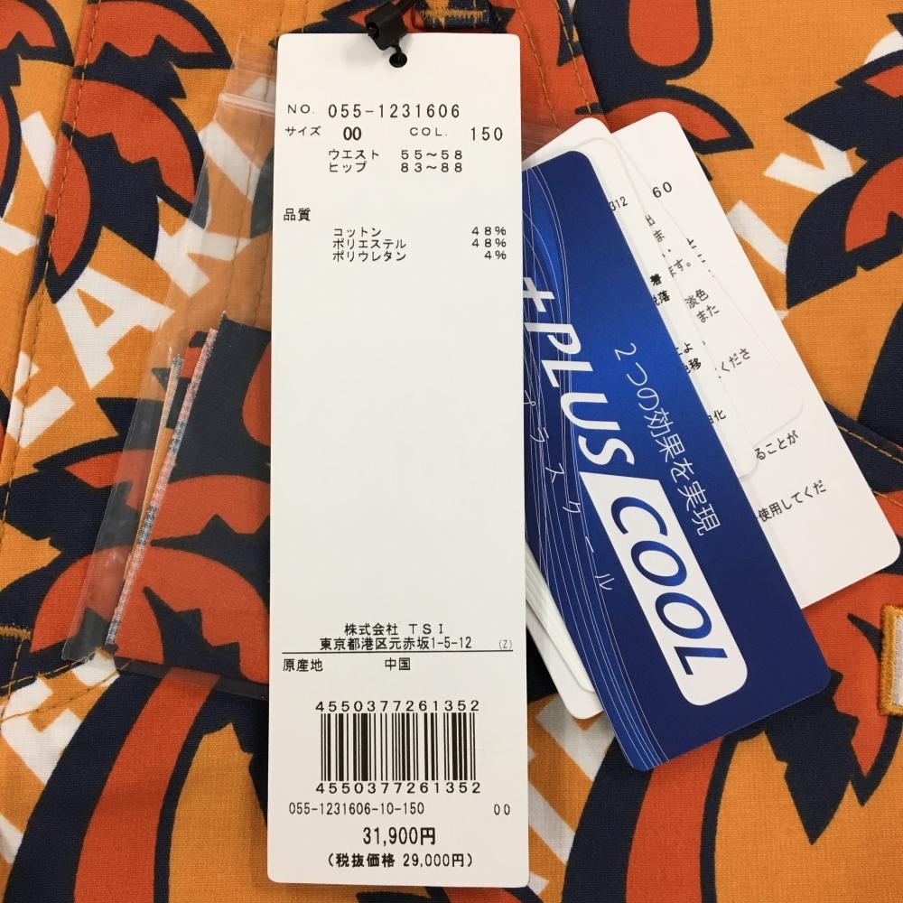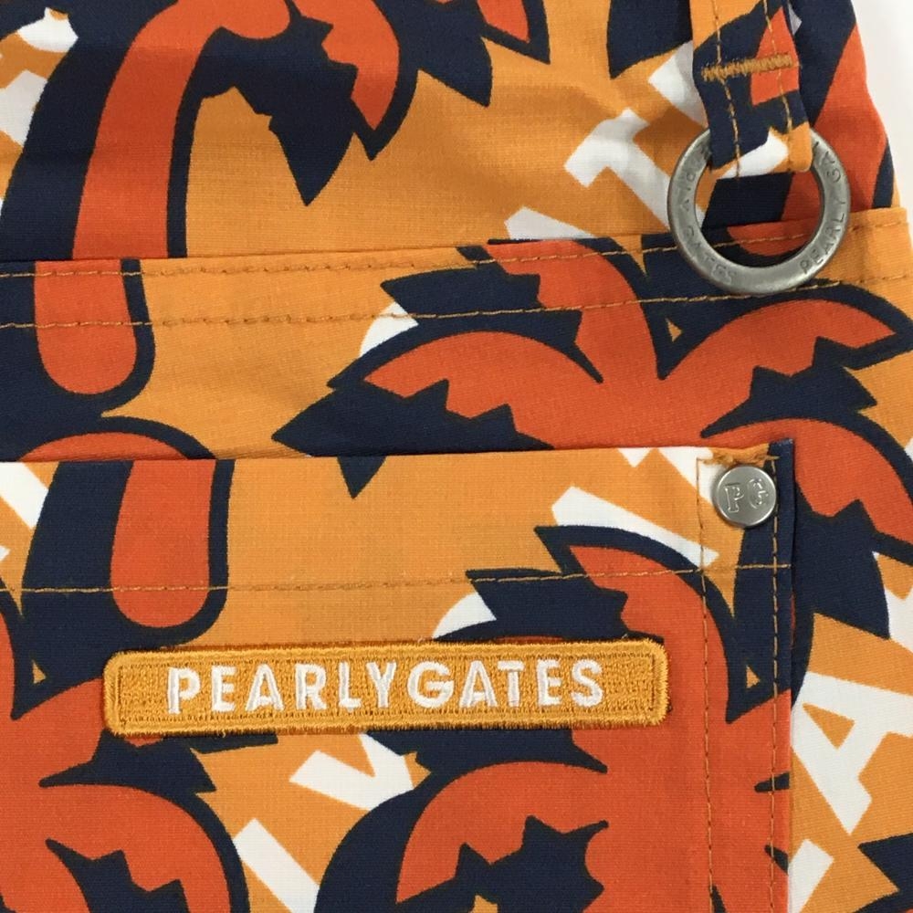 【新品】パーリーゲイツ パンツ ライトオレンジ×オレンジ ヤシの木柄 ロゴ刺しゅう レディース 00(XS) ゴルフウェア PEARLY GATES
