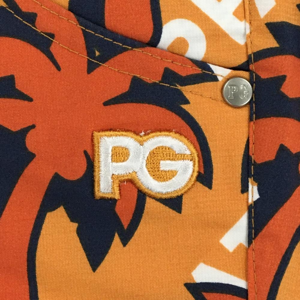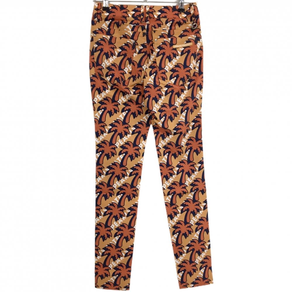 【新品】パーリーゲイツ パンツ ライトオレンジ×オレンジ ヤシの木柄 ロゴ刺しゅう レディース 00(XS) ゴルフウェア PEARLY GATES