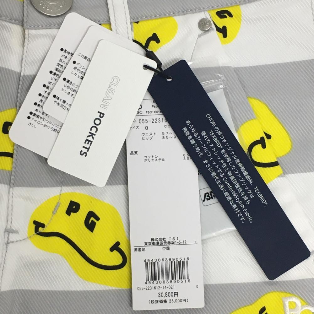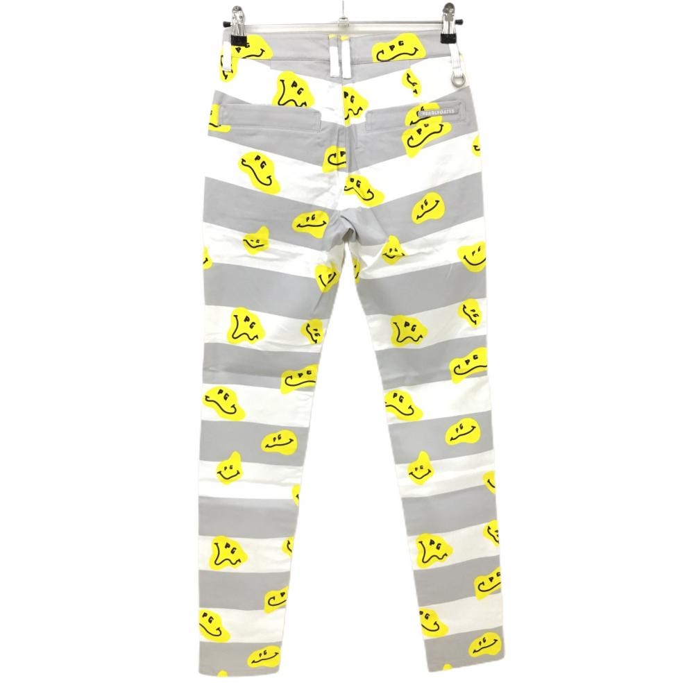 【新品】パーリーゲイツ パンツ 白×グレー×イエロー TOKE NIKO ボーダー ロゴ刺しゅう レディース 0(S) ゴルフウェア PEARLY GATES