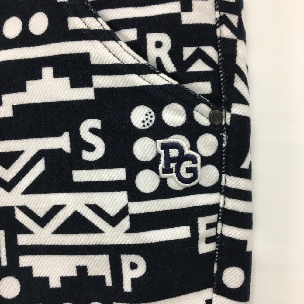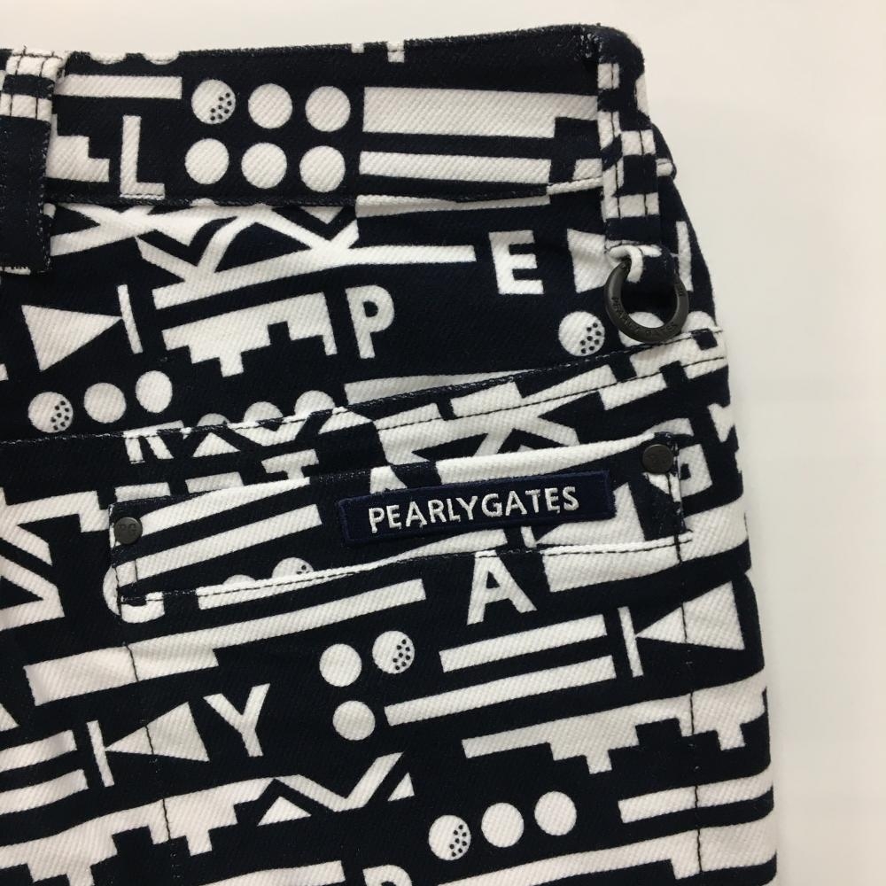 【新品】パーリーゲイツ パンツ ダークネイビー×白 総柄 ロゴ刺しゅう ストレッチ 表微起毛 レディース 00(XS) ゴルフウェア PEARLY GATES