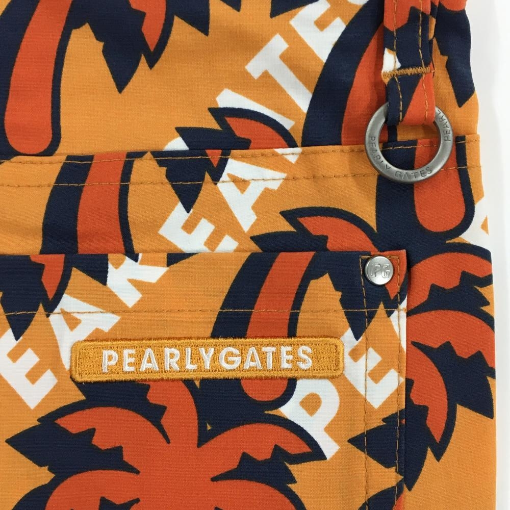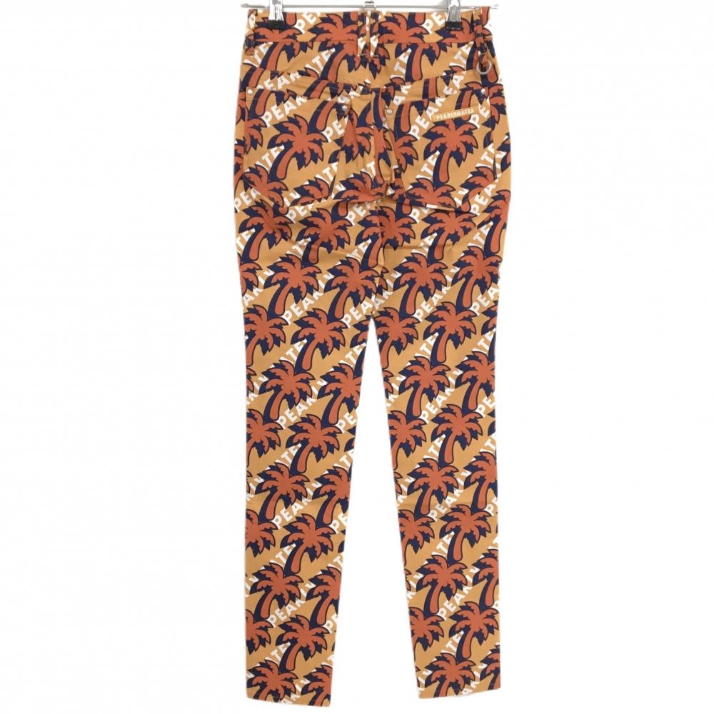 【新品】パーリーゲイツ パンツ ライトオレンジ×オレンジ ヤシの木柄 ロゴ刺しゅう 接触冷感 レディース 1(M) ゴルフウェア PEARLY GATES