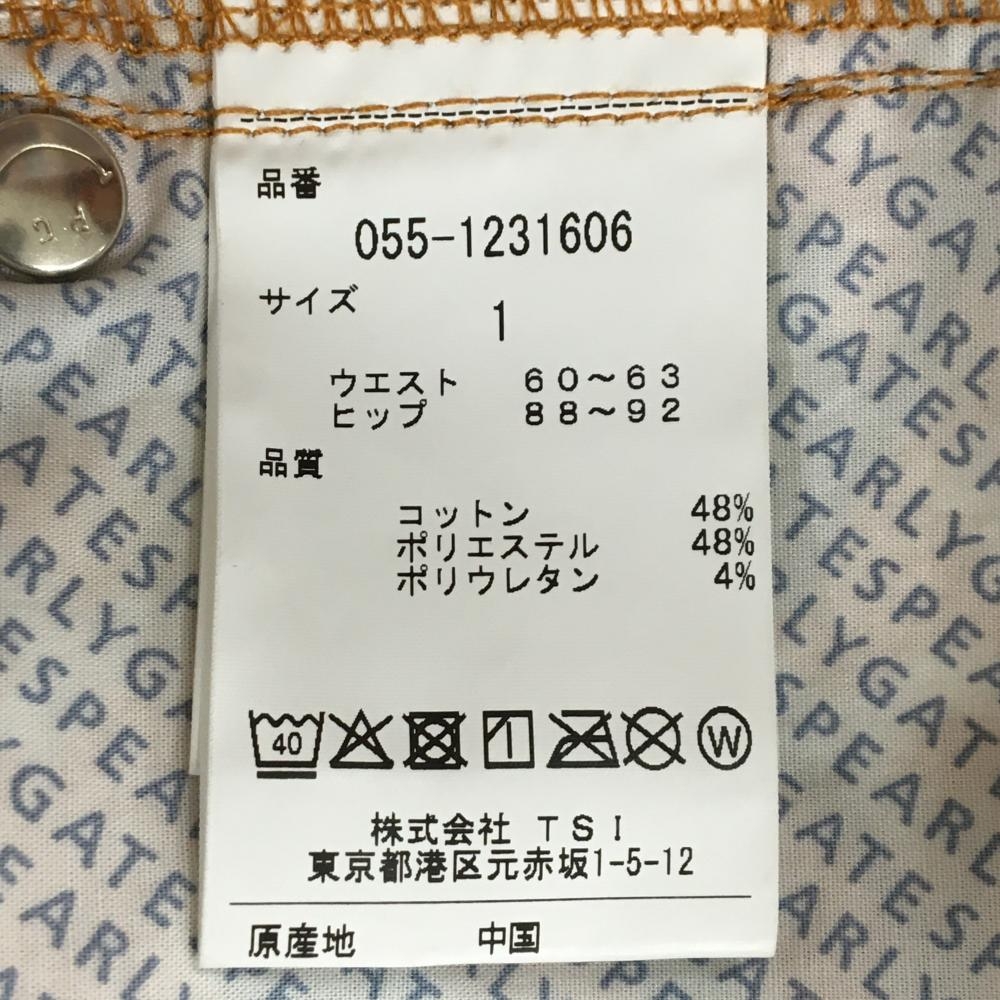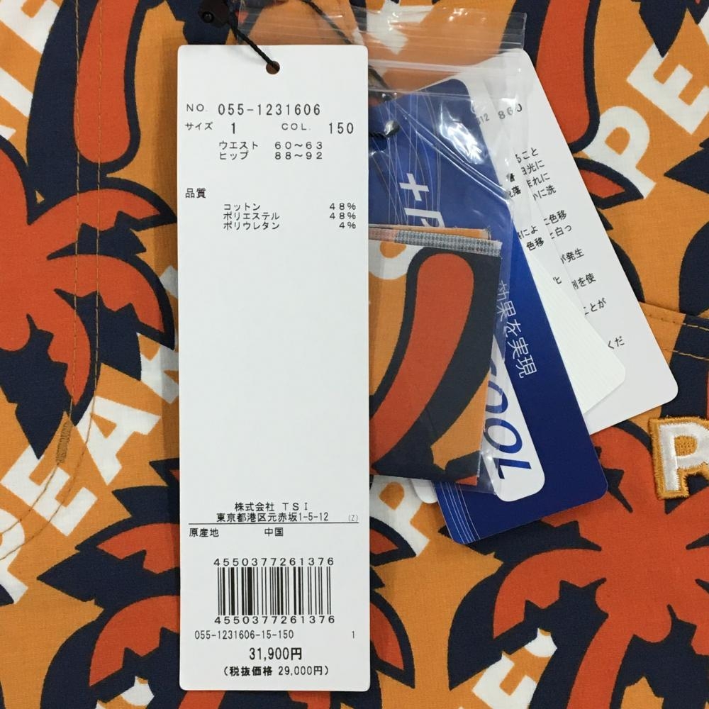 【新品】パーリーゲイツ パンツ ライトオレンジ×オレンジ ヤシの木柄 ロゴ刺しゅう 接触冷感 レディース 1(M) ゴルフウェア PEARLY GATES
