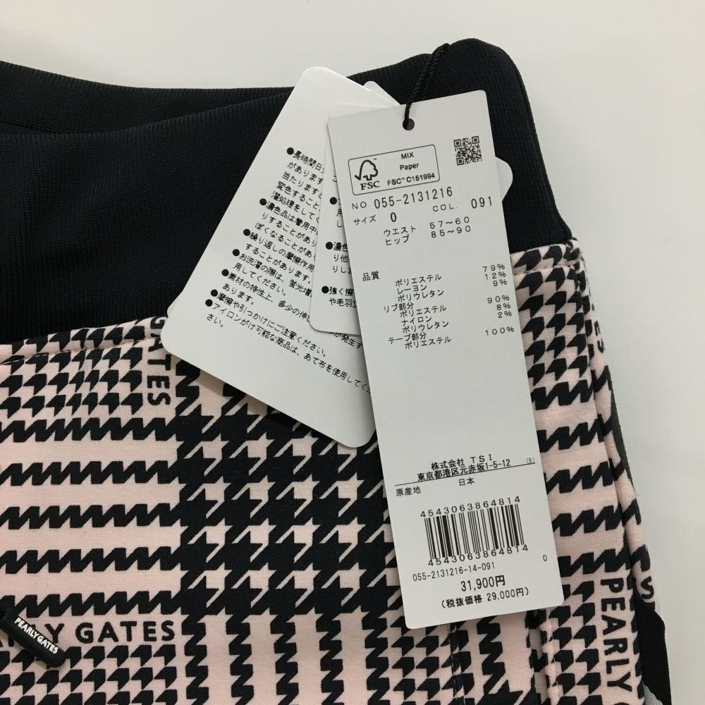 【新品】パーリーゲイツ ジョガーパンツ ライトピンク×黒 チェック ウエストゴム 調節紐 レディース 0(S) ゴルフウェア PEARLY GATES