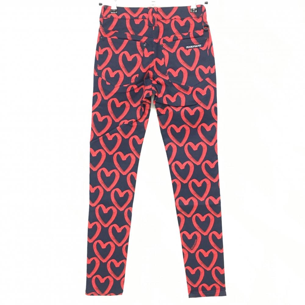 【新品】パーリーゲイツ パンツ ネイビー×レッド ハート柄 ロゴ刺しゅう レディース 0(S) ゴルフウェア PEARLY GATES