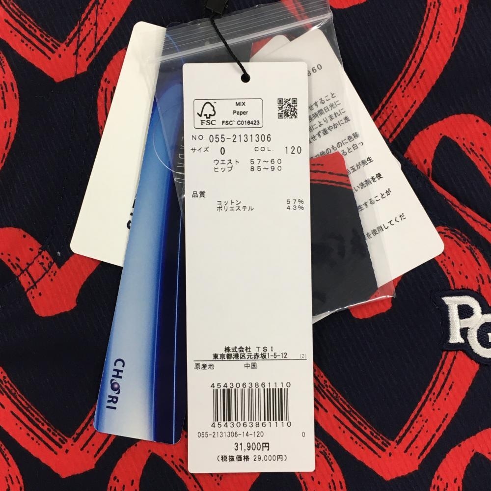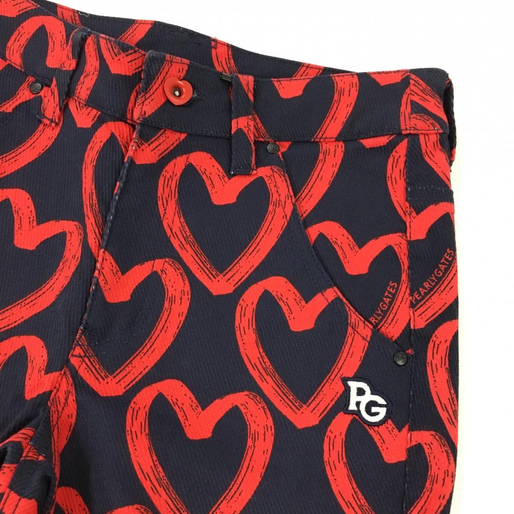 【新品】パーリーゲイツ パンツ ネイビー×レッド ハート柄 ロゴ刺しゅう レディース 0(S) ゴルフウェア PEARLY GATES
