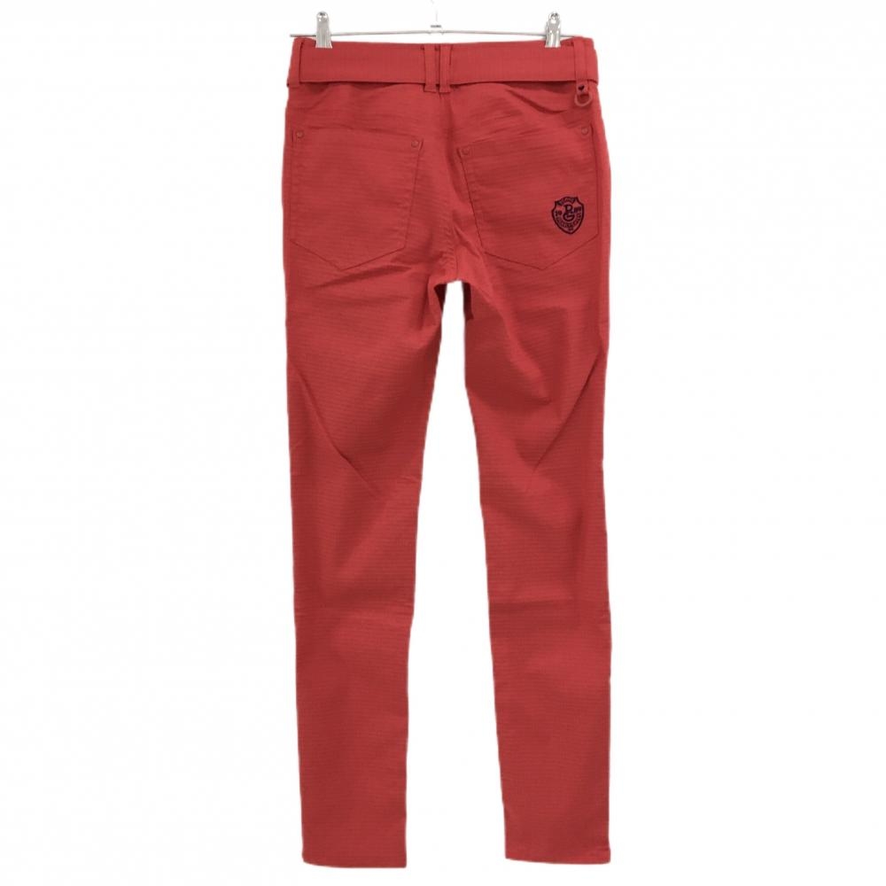 【新品】パーリーゲイツ パンツ レッド×ネイビー 総柄織生地 共布ベルト ストレッチ レディース 0(S) ゴルフウェア PEARLY GATES