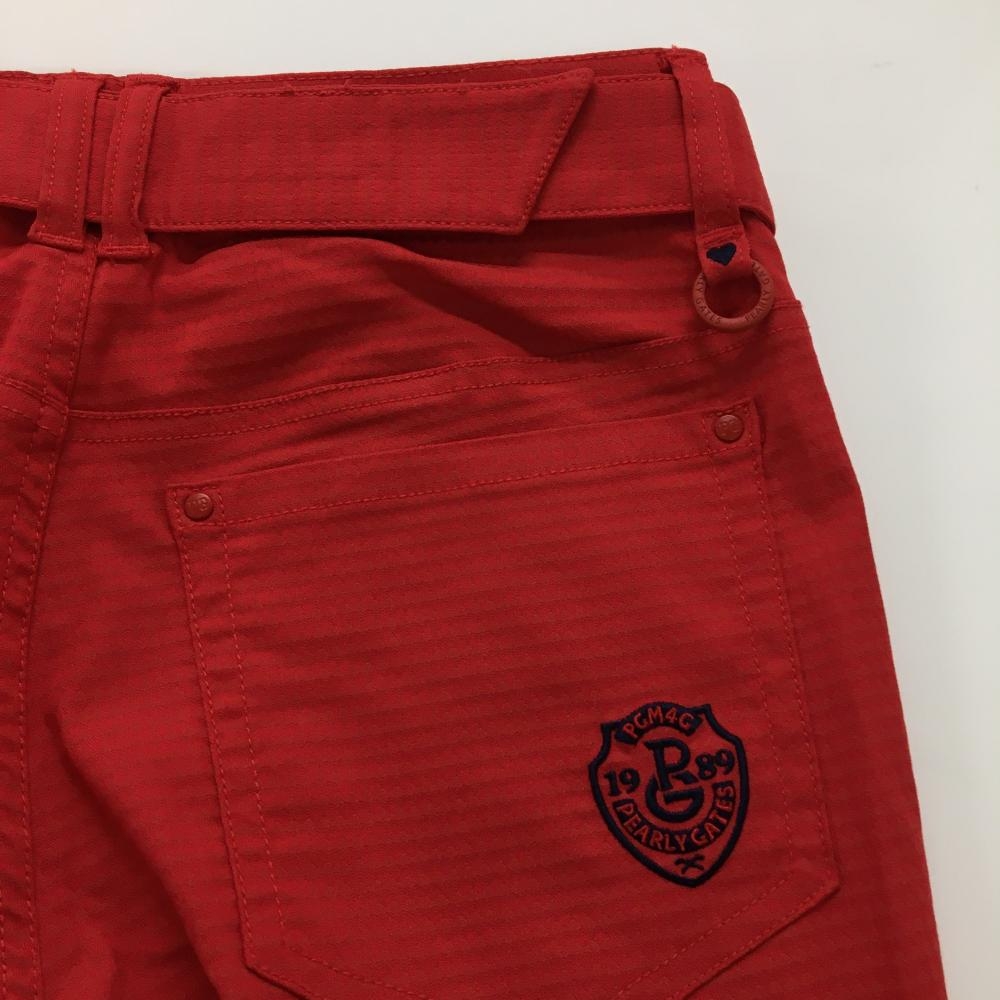 【新品】パーリーゲイツ パンツ レッド×ネイビー 総柄織生地 共布ベルト ストレッチ レディース 0(S) ゴルフウェア PEARLY GATES