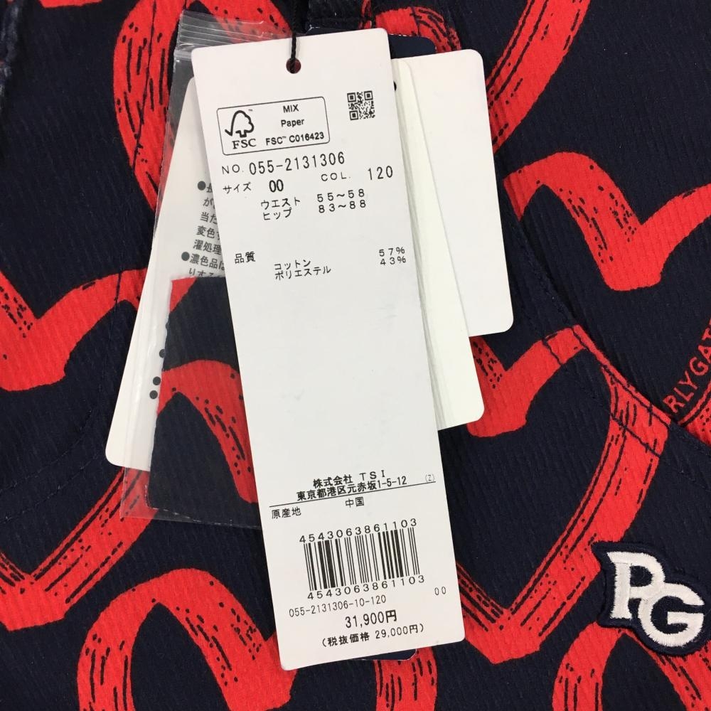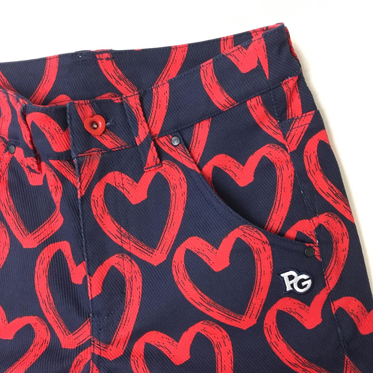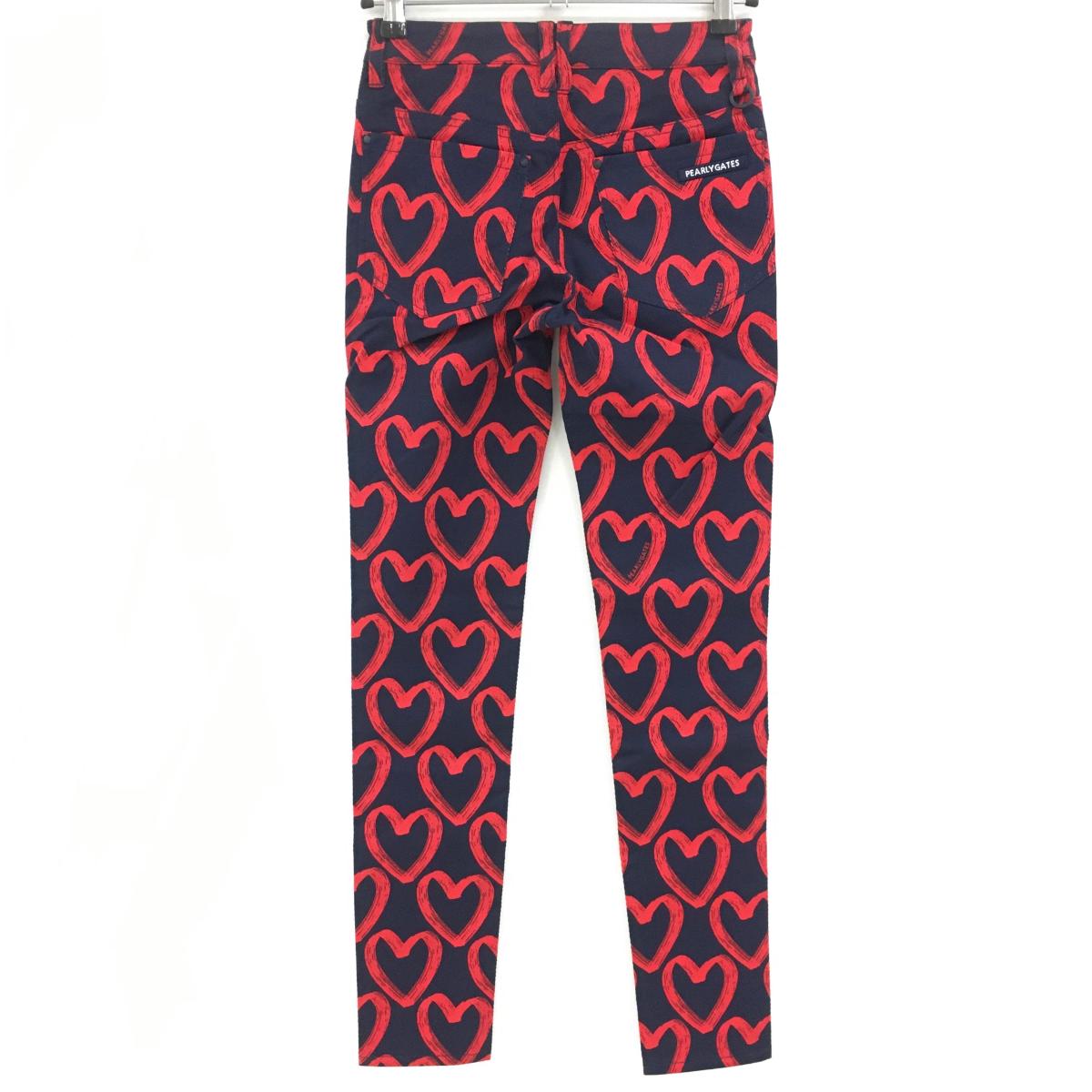 【新品】パーリーゲイツ パンツ ネイビー×レッド ハート柄 ロゴ刺しゅう レディース 00(XS) ゴルフウェア PEARLY GATES