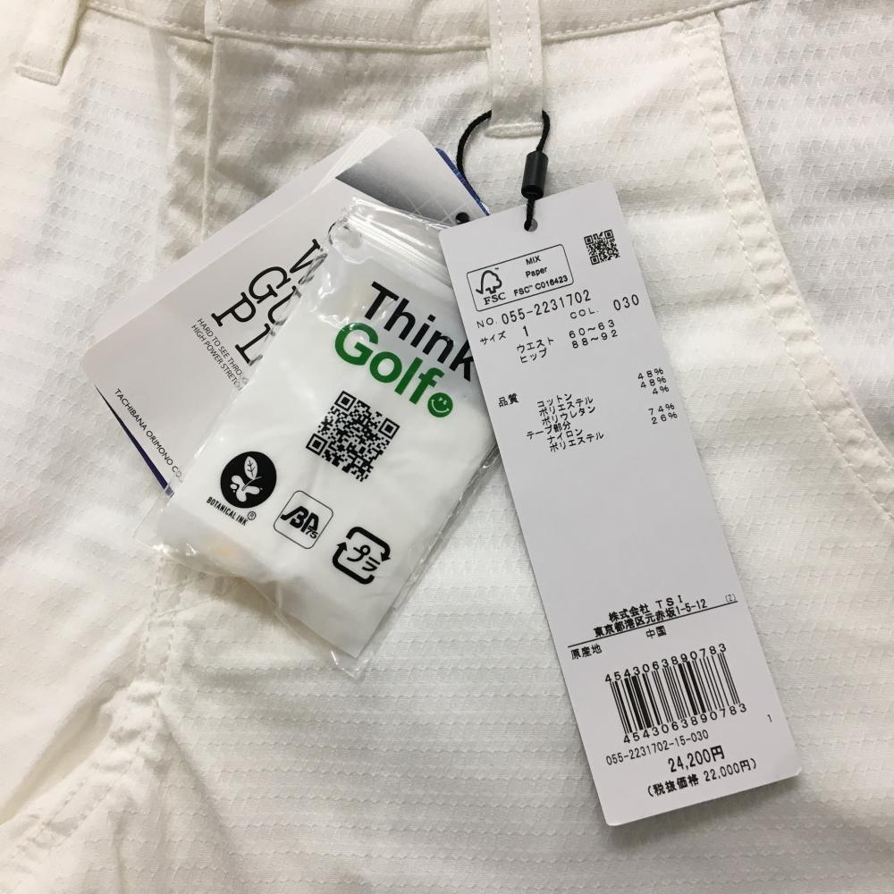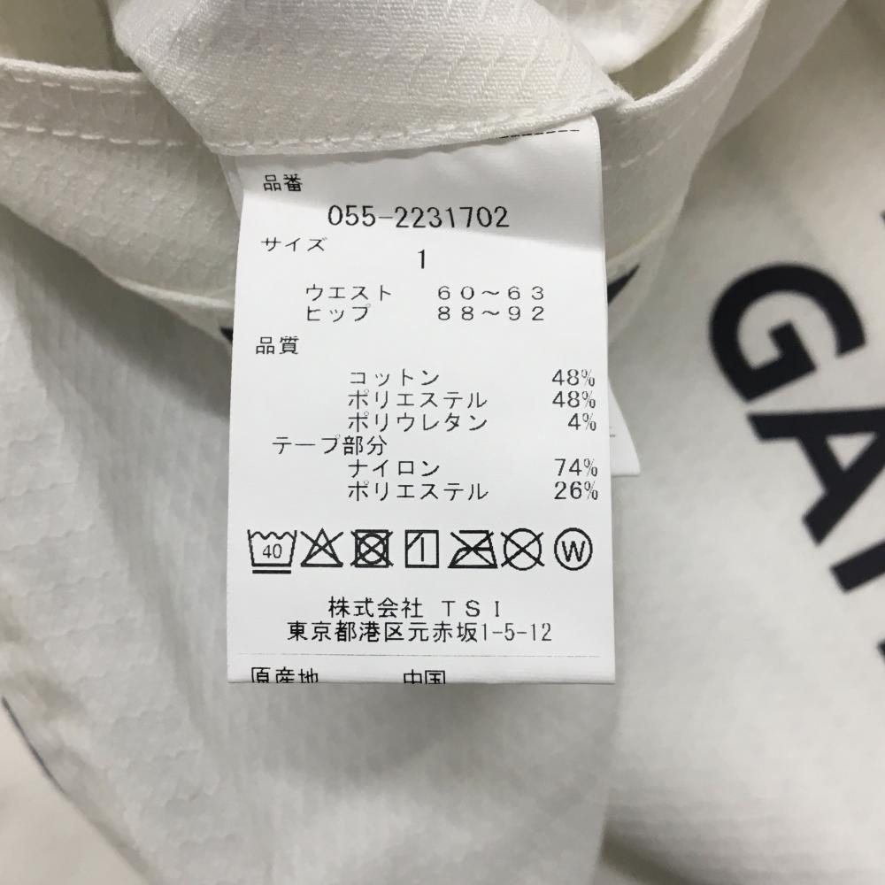 【新品】パーリーゲイツ パンツ 白×グレー 総柄織生地 ウエストロゴライン ティー付き レディース 1(M) ゴルフウェア PEARLY GATES