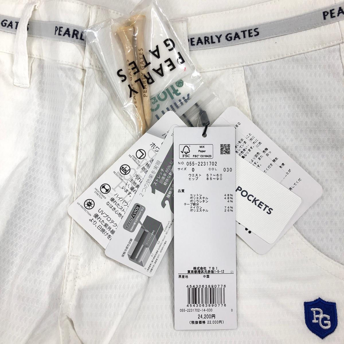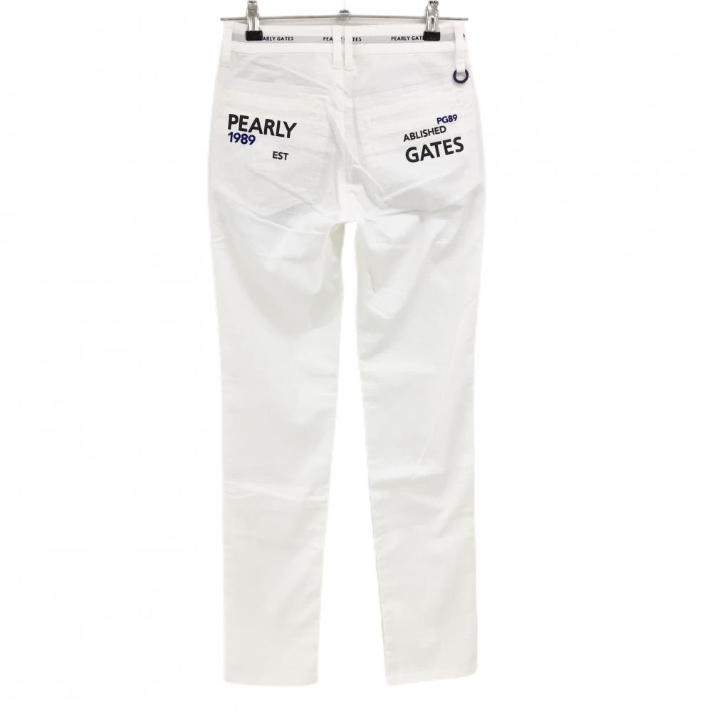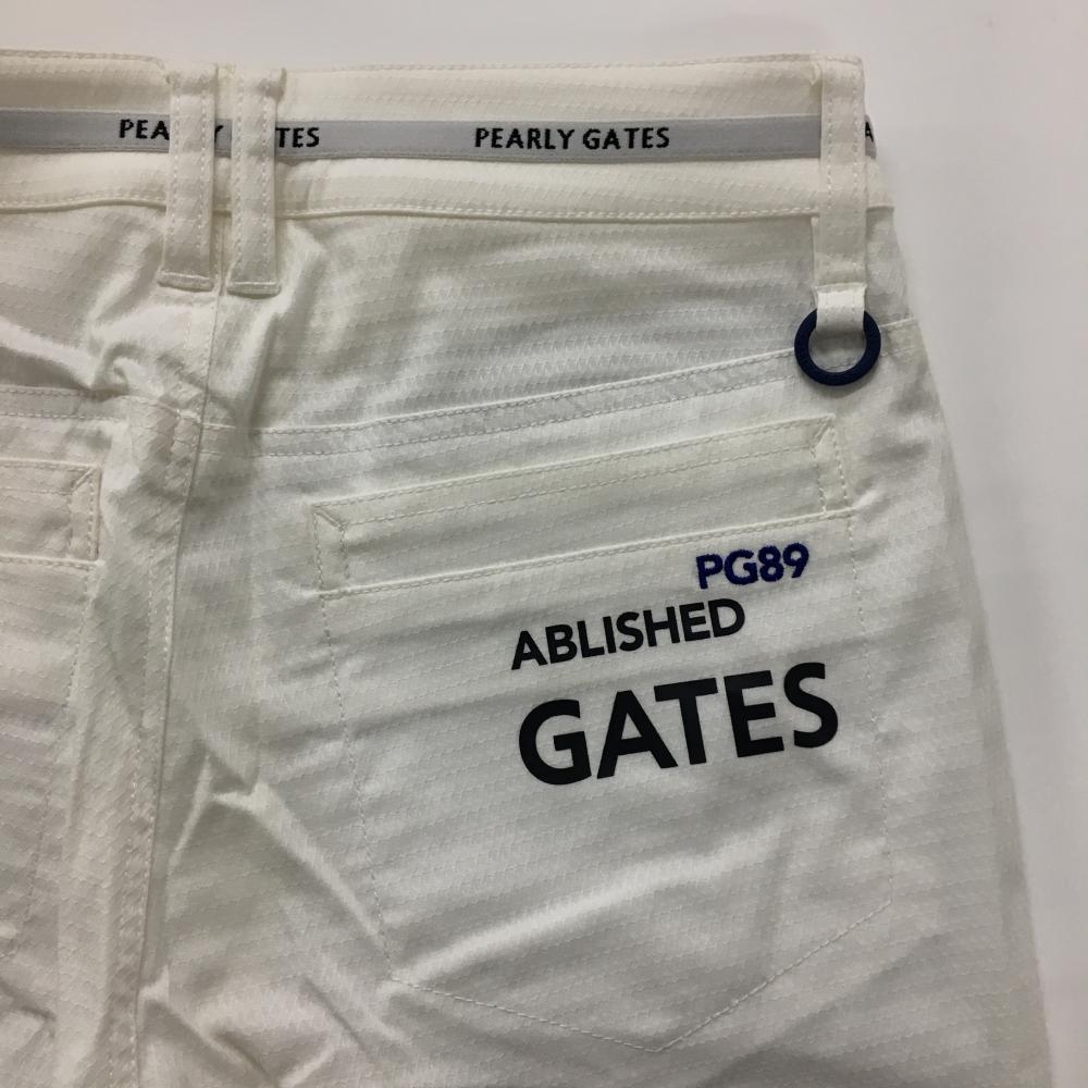 【新品】パーリーゲイツ パンツ 白×グレー 総柄織生地 ウエストロゴライン ティー付き レディース 0(S) ゴルフウェア PEARLY GATES