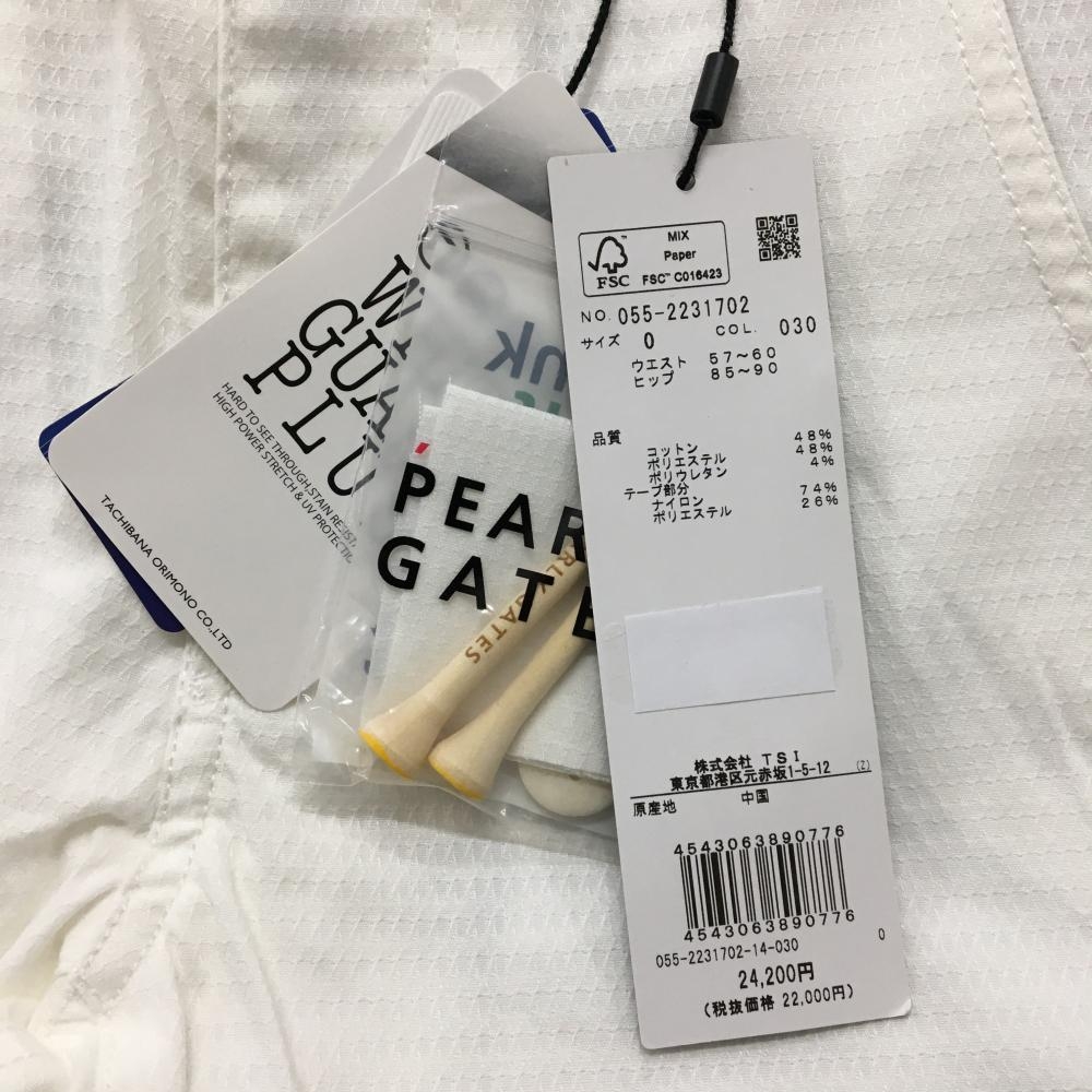 【新品】パーリーゲイツ パンツ 白×グレー 総柄織生地 ウエストロゴライン ティー付き レディース 0(S) ゴルフウェア PEARLY GATES