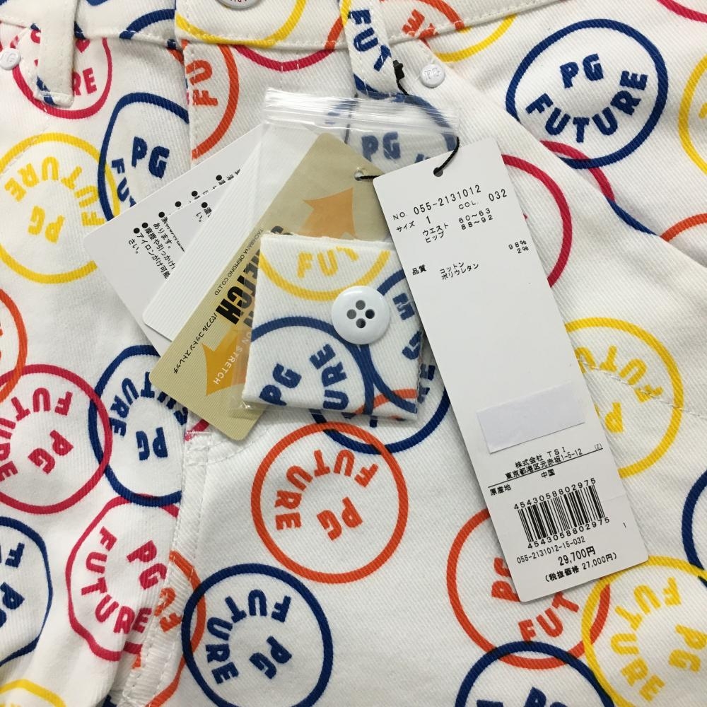 【新品】パーリーゲイツ パンツ 白×マルチカラー FUTUREニコ ストレッチ レディース 1(M) ゴルフウェア PEARLY GATES