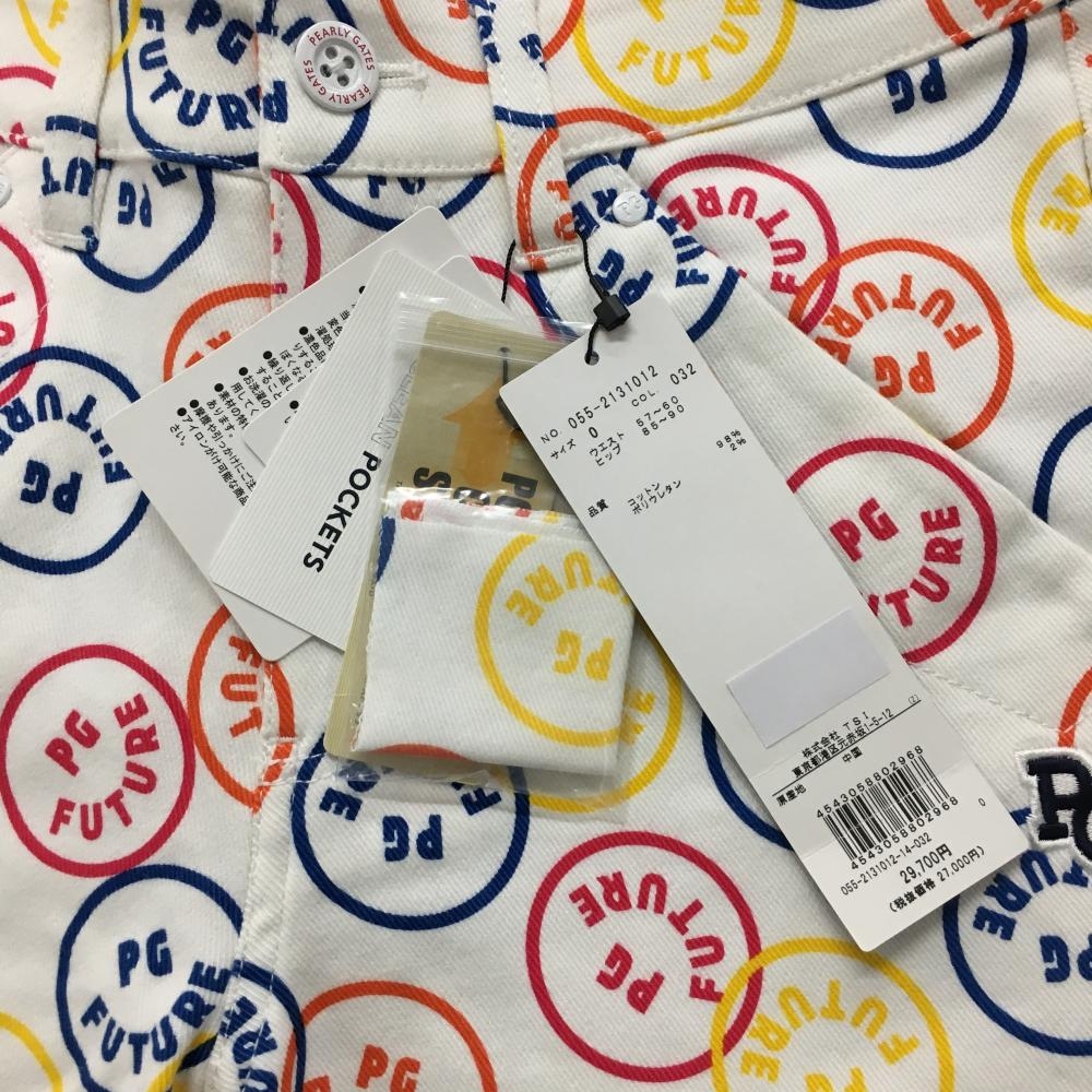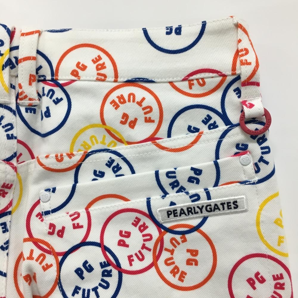【新品】パーリーゲイツ パンツ 白×マルチカラー FUTUREニコ ストレッチ レディース 0(S) ゴルフウェア PEARLY GATES