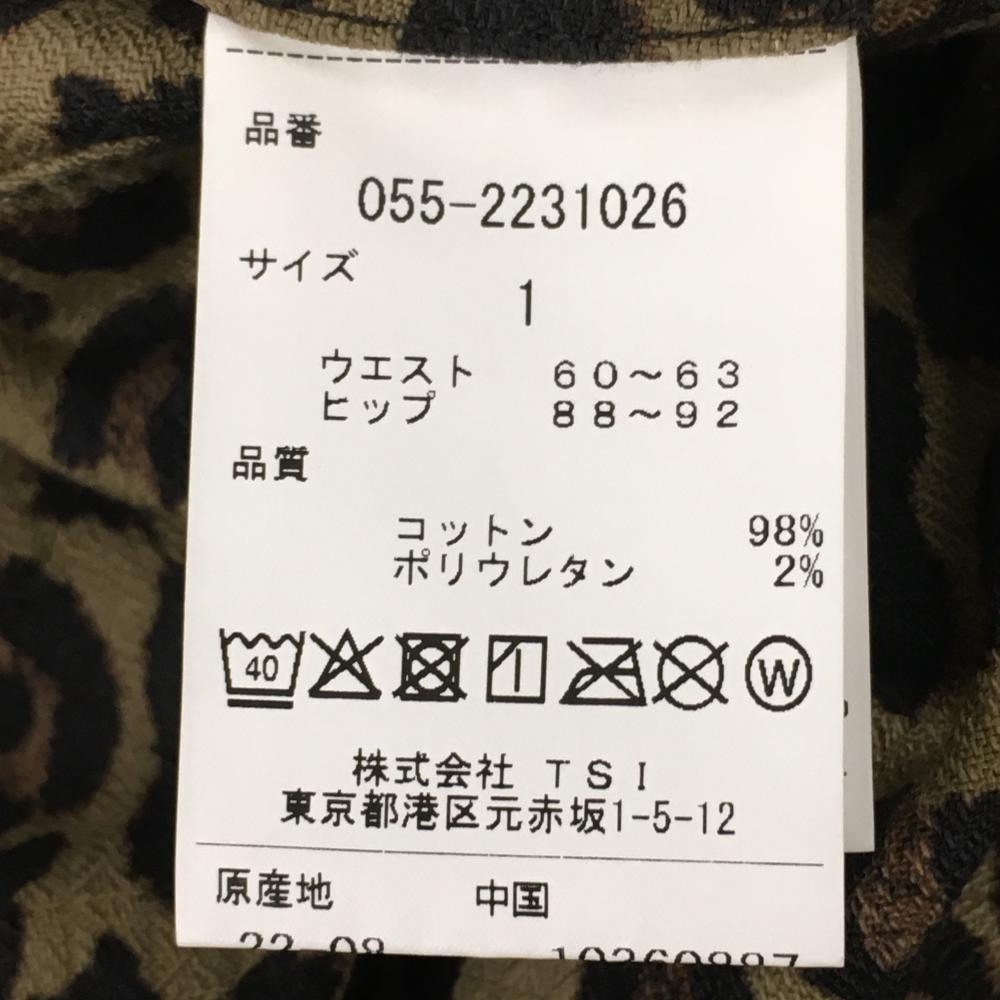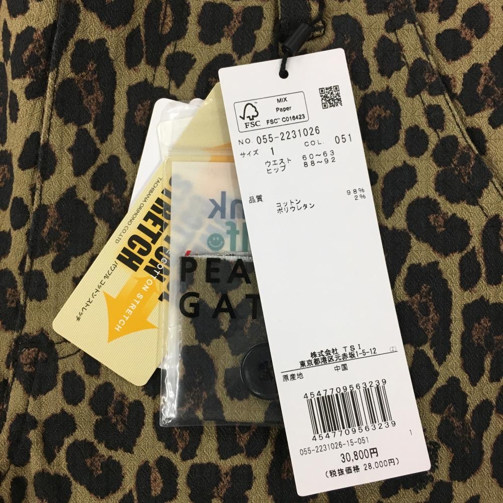 【新品】パーリーゲイツ パンツ ベージュ系×黒 レオパード ロゴ白 ストレッチ レディース 1(M) ゴルフウェア PEARLY GATES