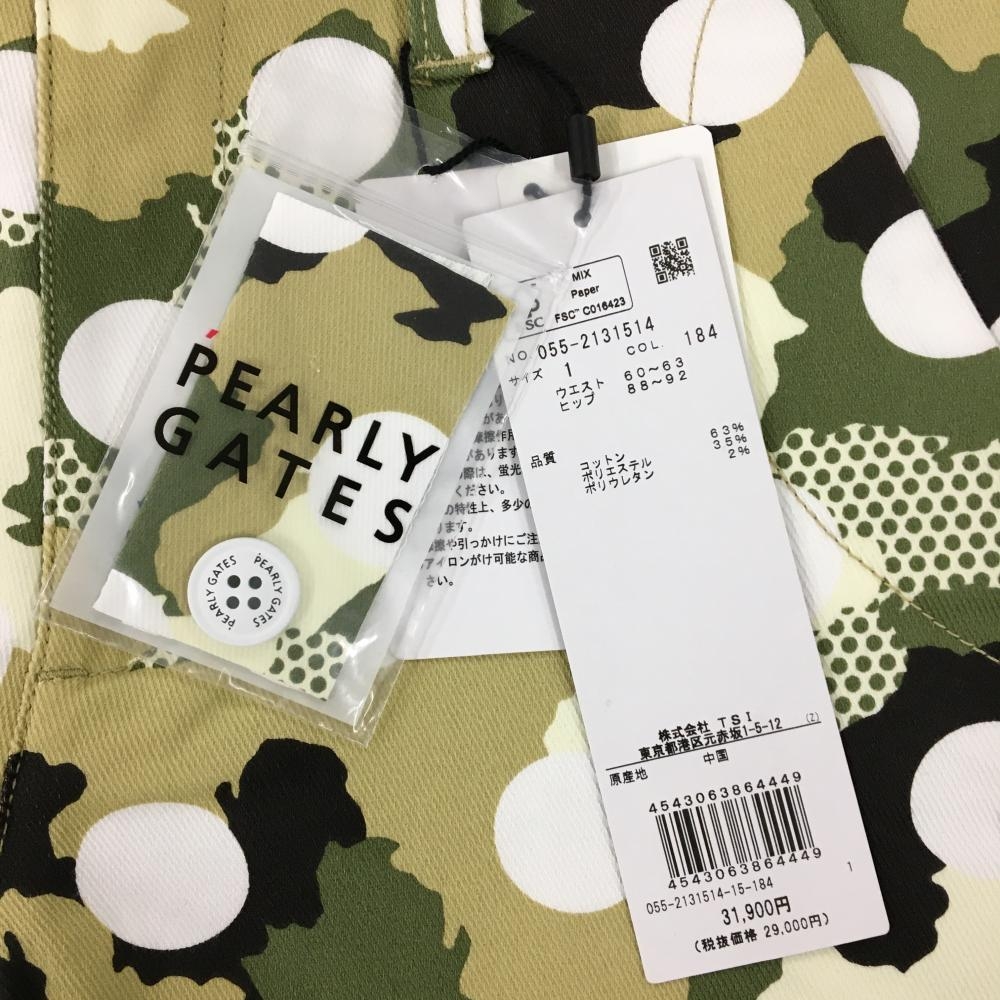 【新品】パーリーゲイツ パンツ カーキ×白 カモフラ調 迷彩 ドット ロゴ刺しゅう レディース 1(M) ゴルフウェア PEARLY GATES