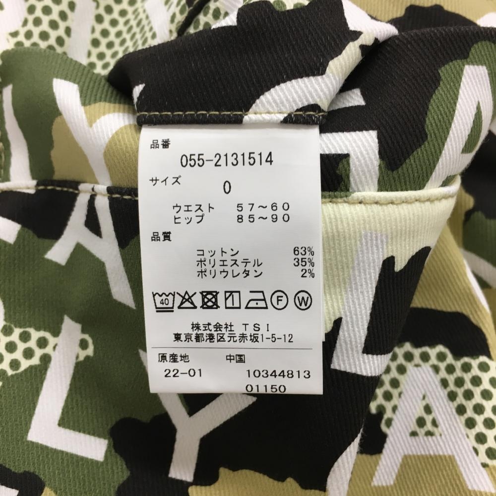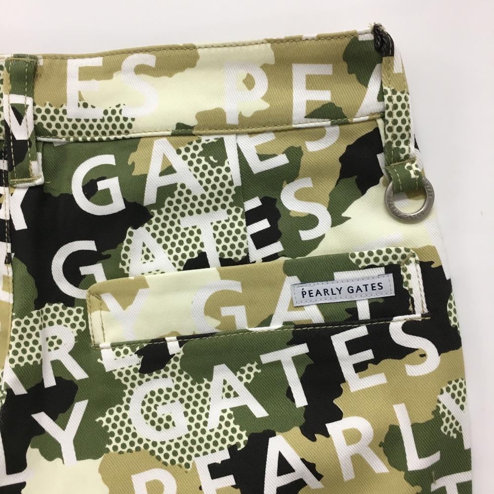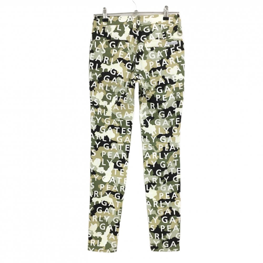 【新品】パーリーゲイツ パンツ カーキ×白 ロゴ総柄 カモフラ調 迷彩 ロゴ刺しゅう レディース 0(S) ゴルフウェア PEARLY GATES