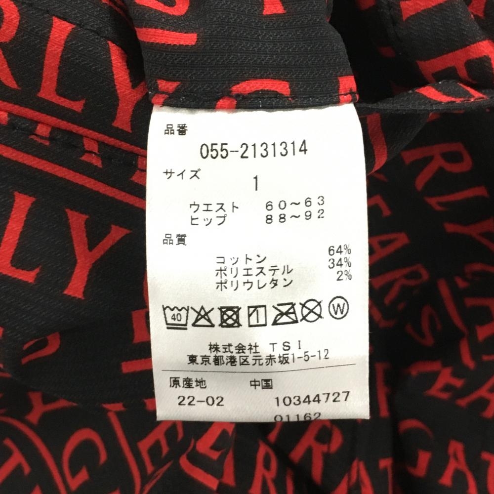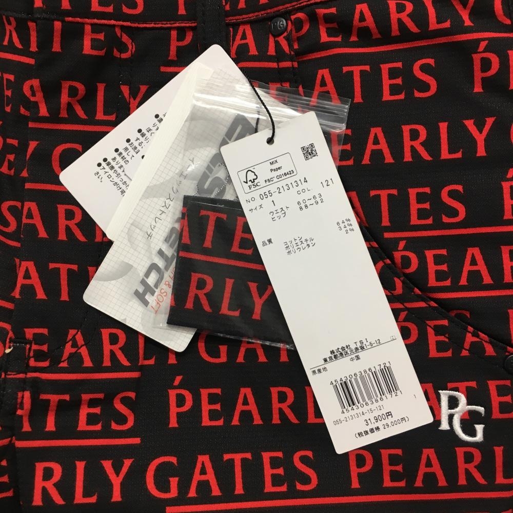 【新品】パーリーゲイツ パンツ 黒×レッド ロゴ総柄 刺しゅう白 レディース 1(M) ゴルフウェア PEARLY GATES