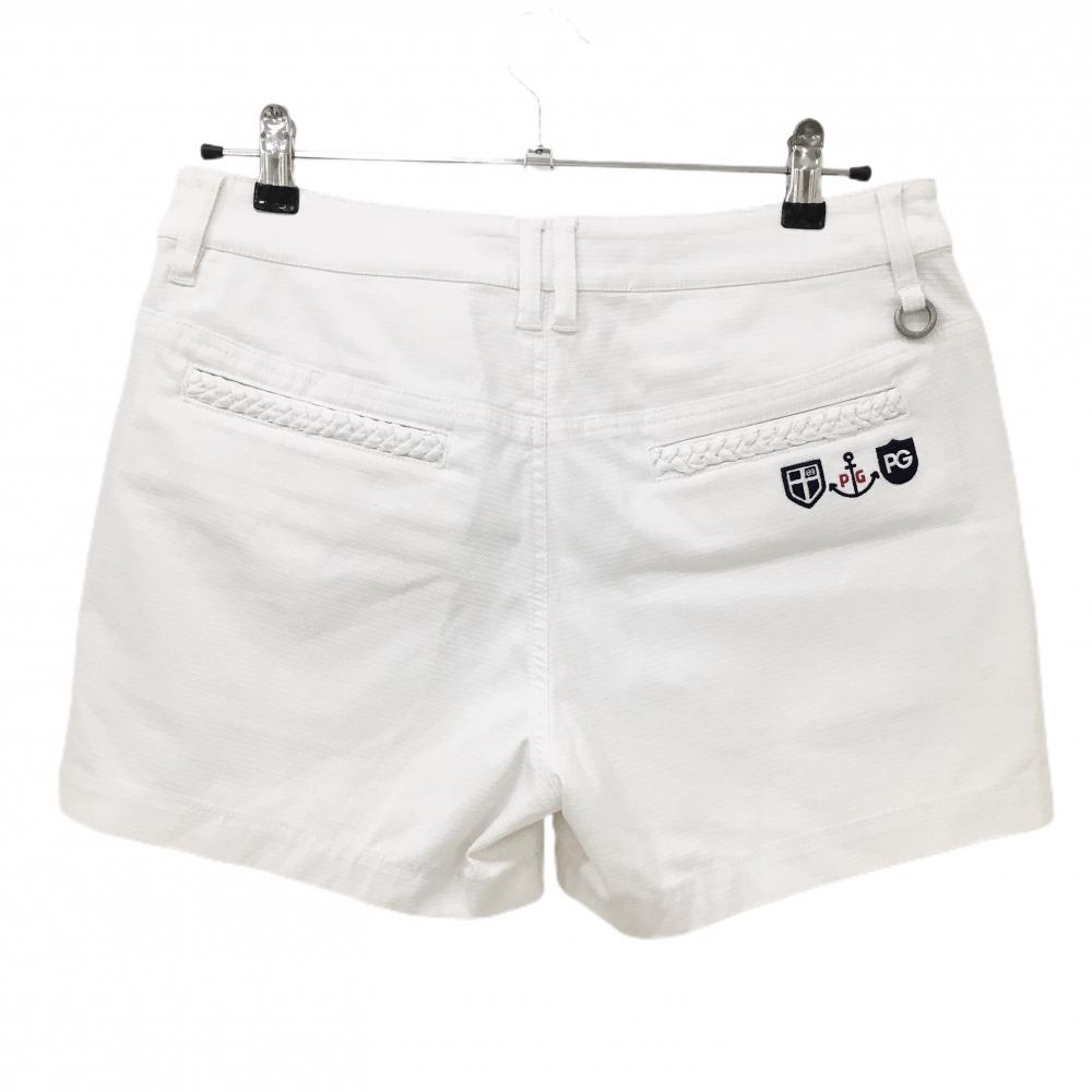 パーリーゲイツ ショートパンツ 白 織生地 ロゴネイビー ストレッチ レディース 2(L) ゴルフウェア PEARLY GATES
