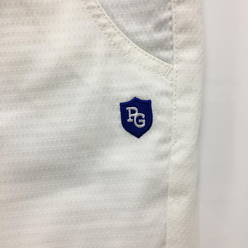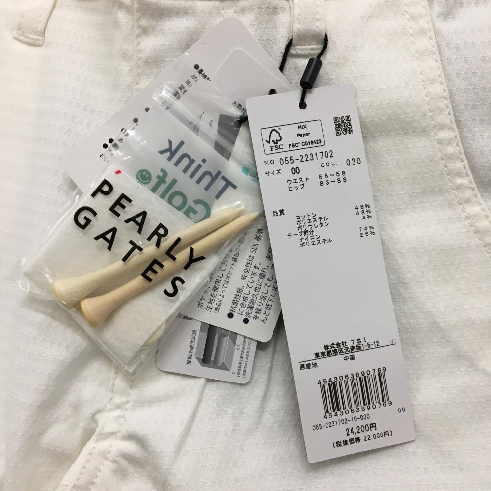 【新品】パーリーゲイツ パンツ 白×グレー 総柄織生地 ウエストロゴライン ティー付き レディース 00(XS) ゴルフウェア PEARLY GATES