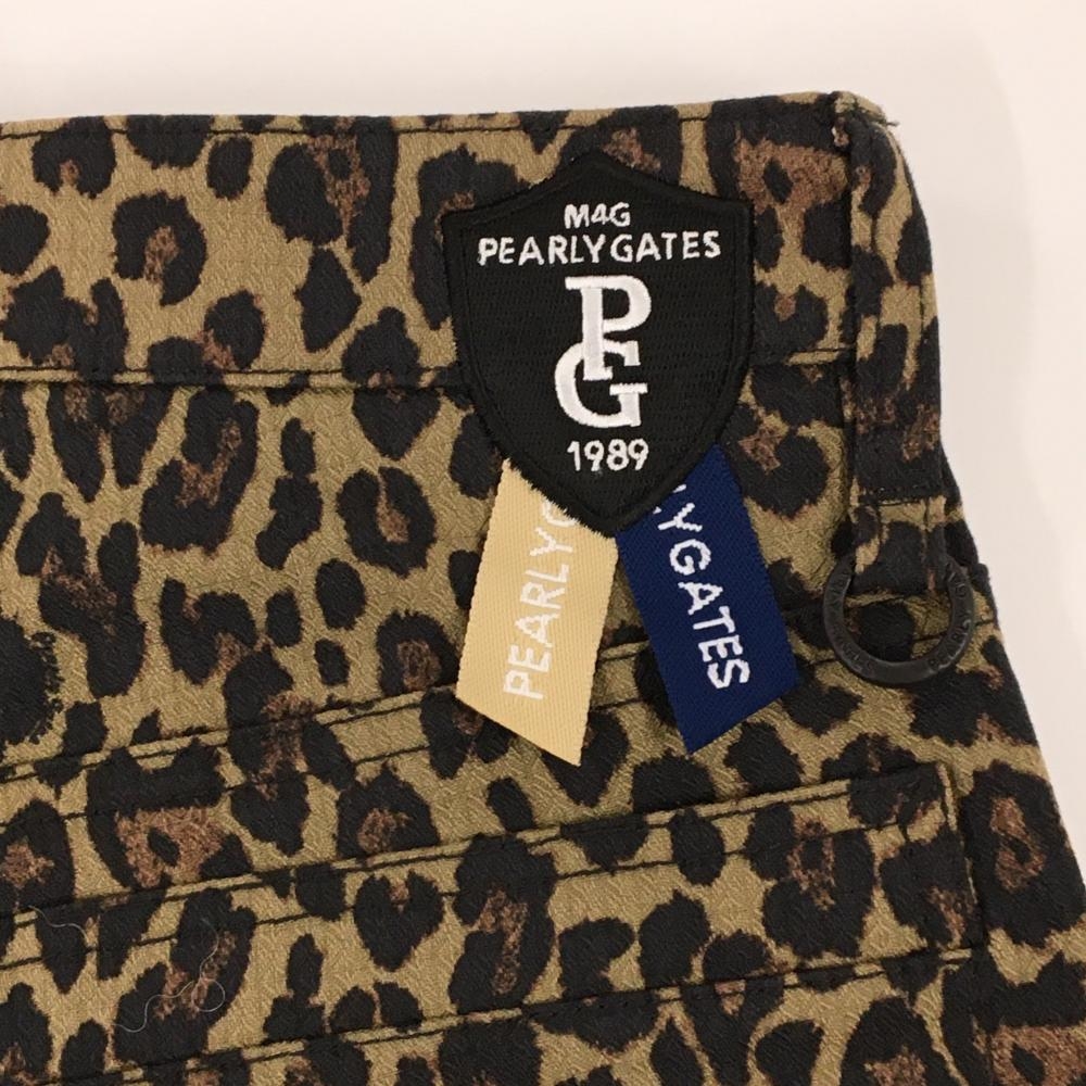 【新品】パーリーゲイツ パンツ ベージュ系×黒 レオパード ロゴ白 ストレッチ レディース XS ゴルフウェア PEARLY GATES