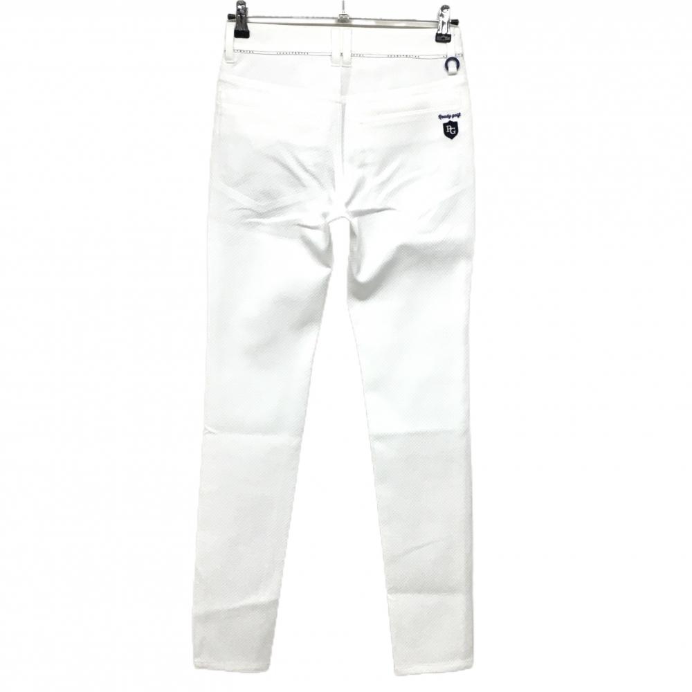 【新品】パーリーゲイツ パンツ 白×ブルー ダイヤ柄織生地 ロゴ刺しゅう レディース 0(S) ゴルフウェア PEARLY GATES