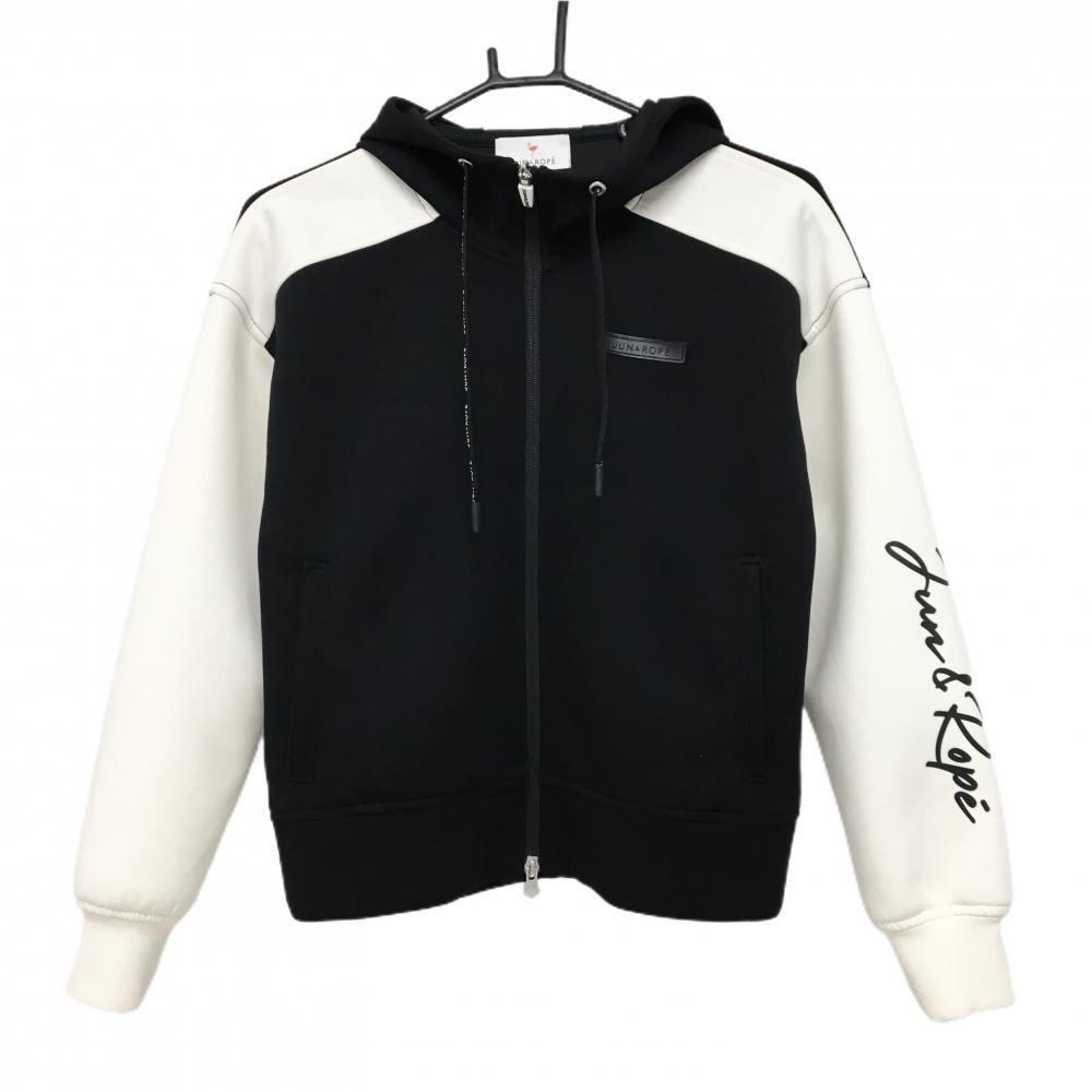 ジュンアンドロペ ジップパーカー 黒×白 シリコンワッペン 袖プリント レディース S ゴルフウェア JUN&ROPE