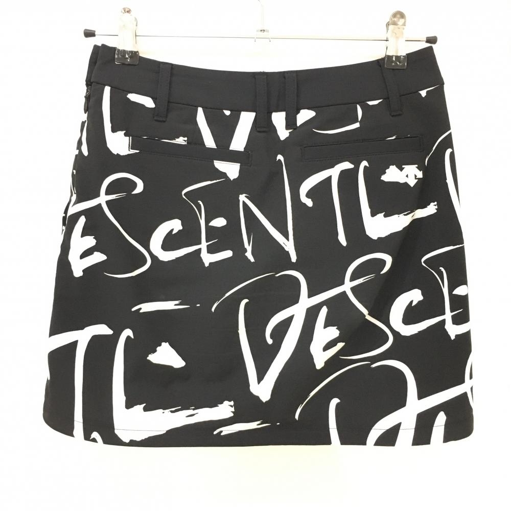 【美品】デサントゴルフ×万美 スカート 黒×白 総柄 内側インナーパンツ 中田英寿 レディース 58/SS ゴルフウェア DESCENTE