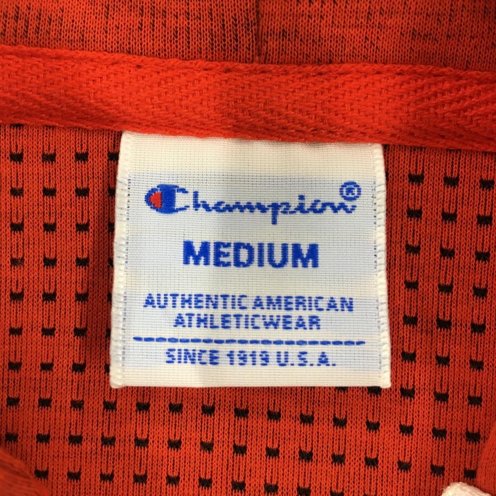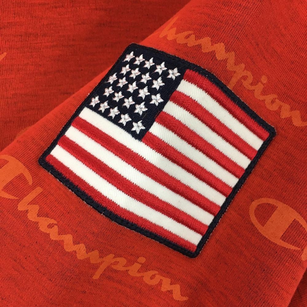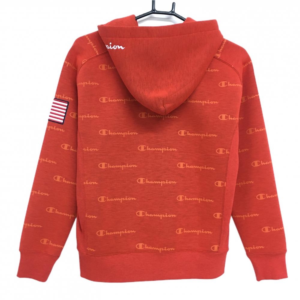 【超美品】チャンピオン ジップパーカー オレンジ ロゴ総柄 星条旗 ジャケット レディース MEDIUM ゴルフウェア Champion