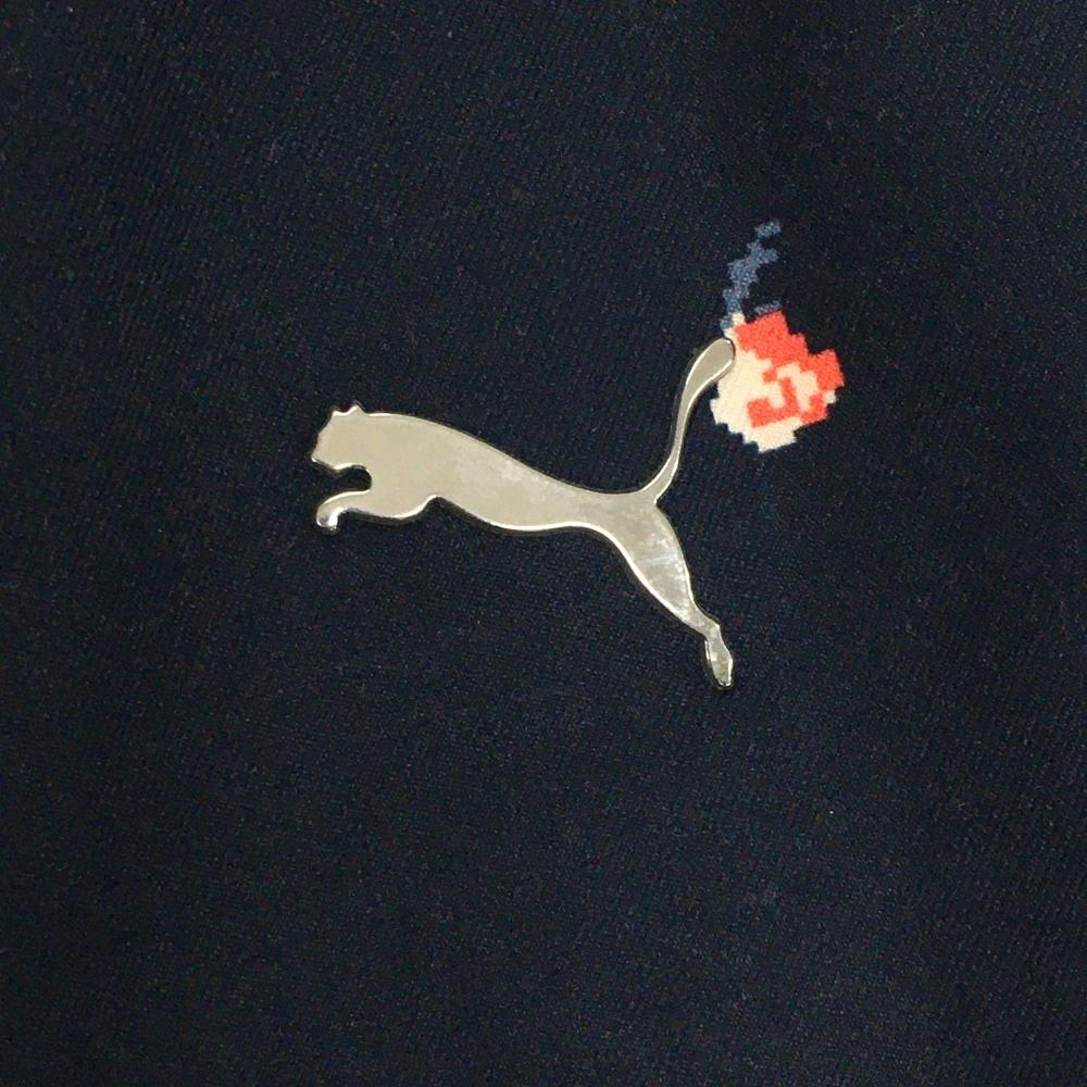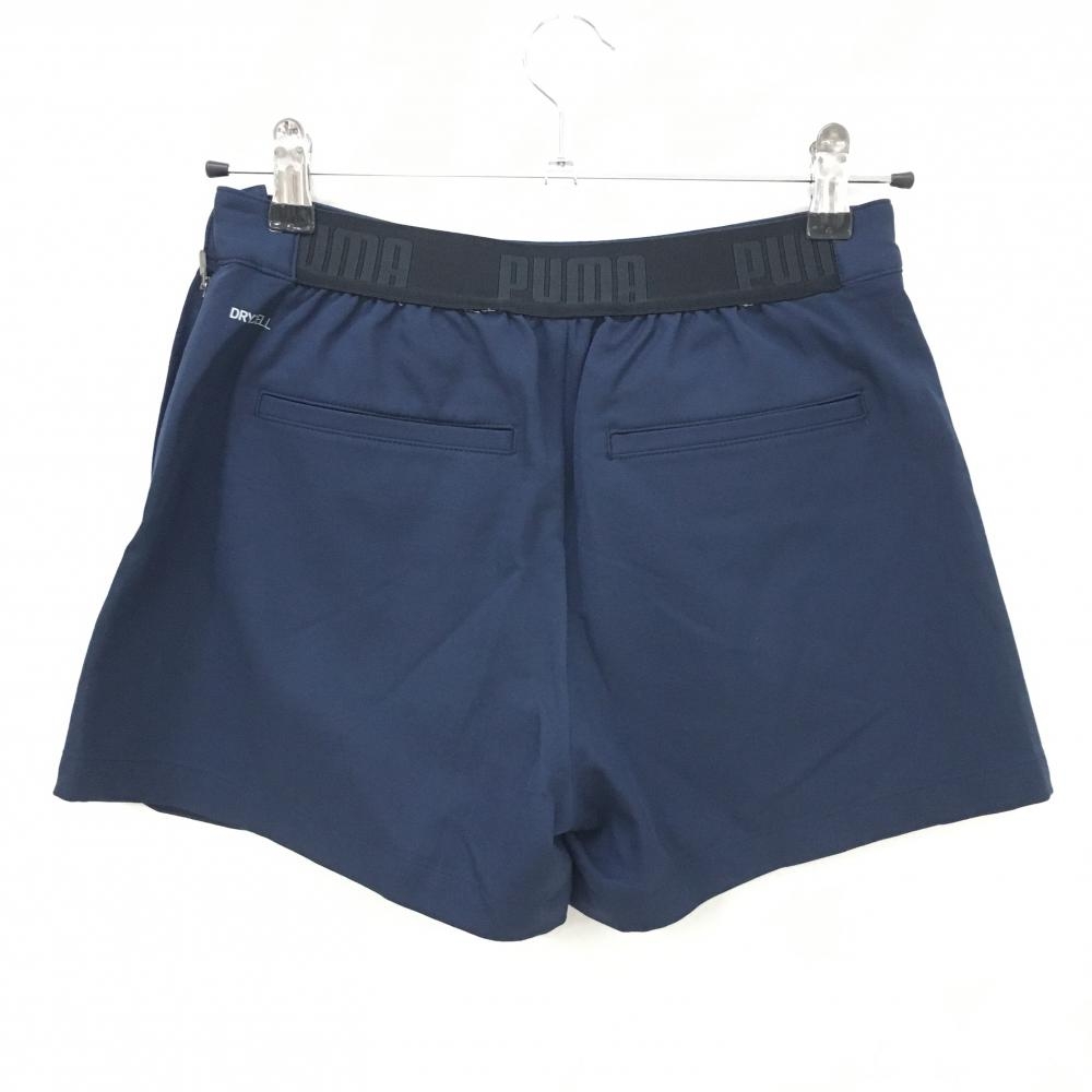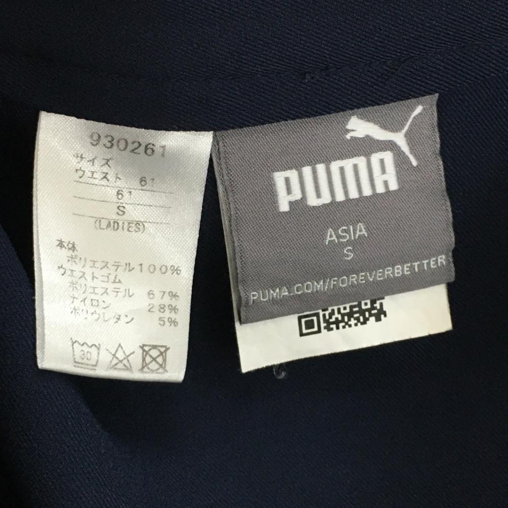 【美品】プーマ キュロットスカート ネイビー×レッドピンク 花柄 立体ロゴ ウエスト後ろゴム レディース S ゴルフウェア PUMA
