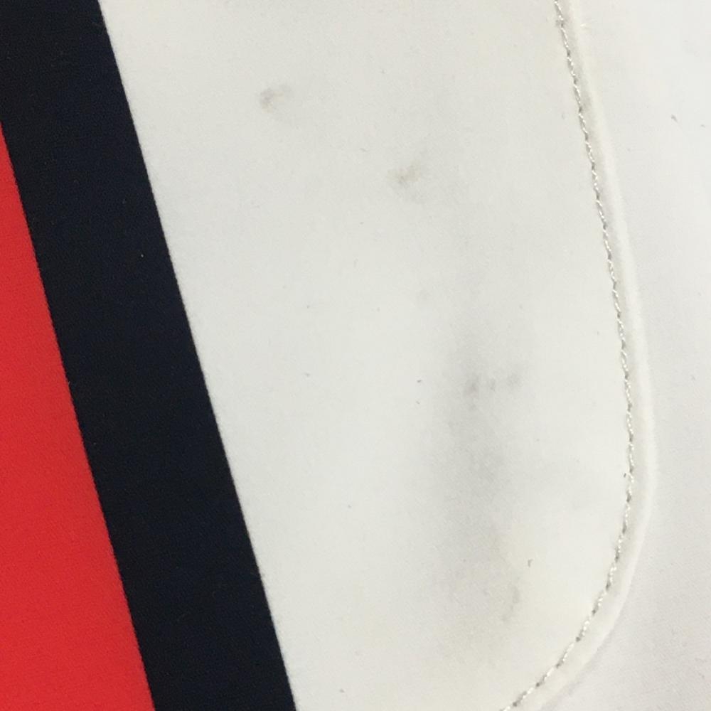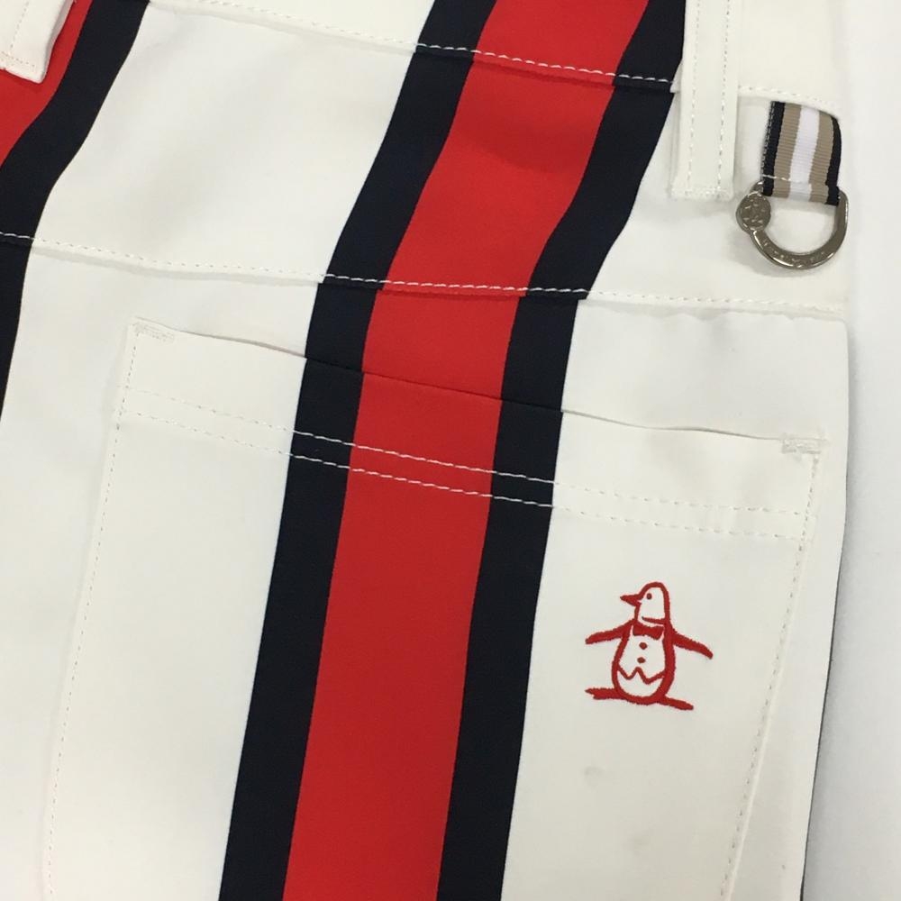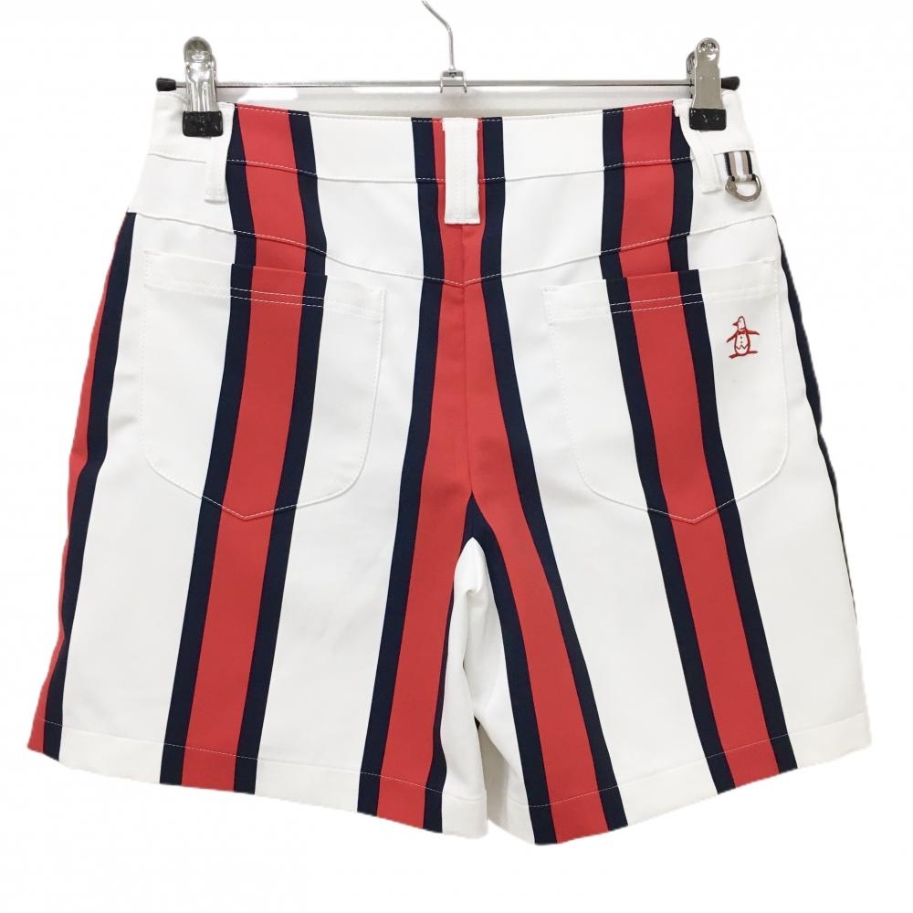 マンシングウェア キュロットスカート 白×レッド×ネイビー ストライプ ボタン レディース 9 ゴルフウェア Munsingwear
