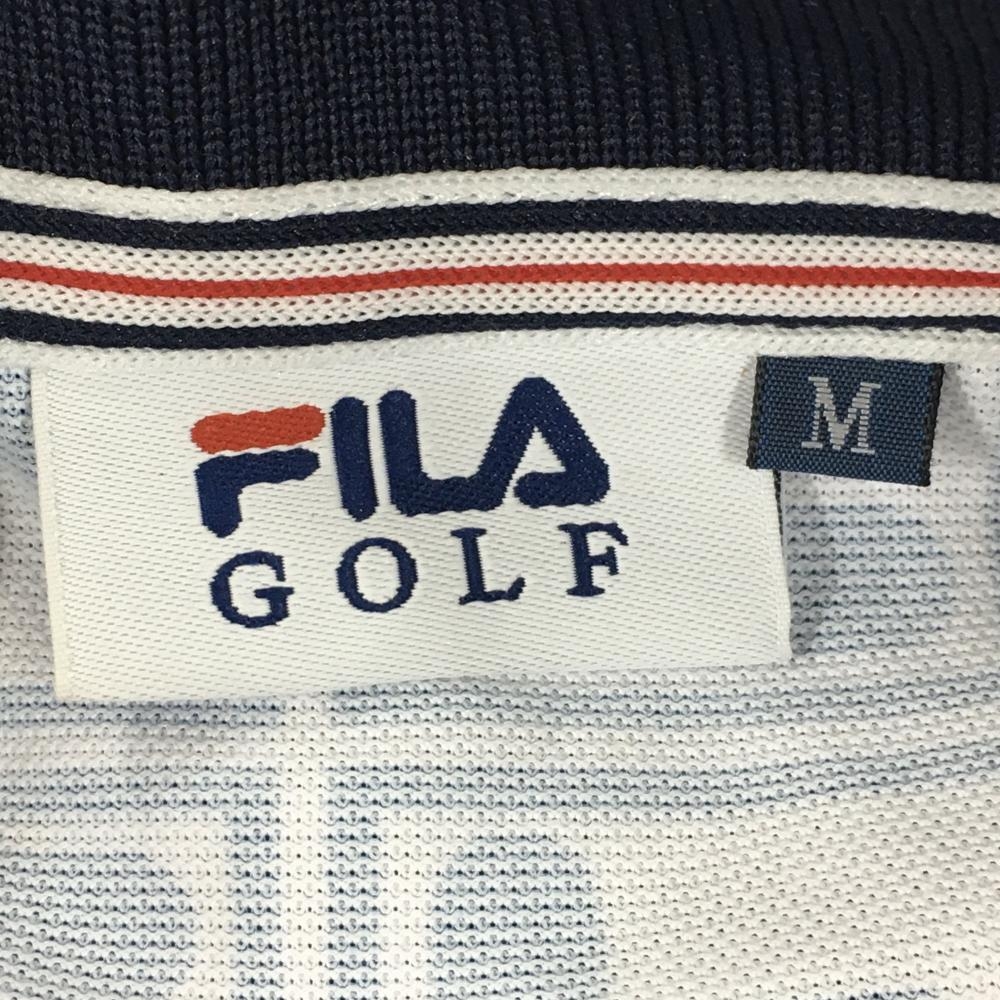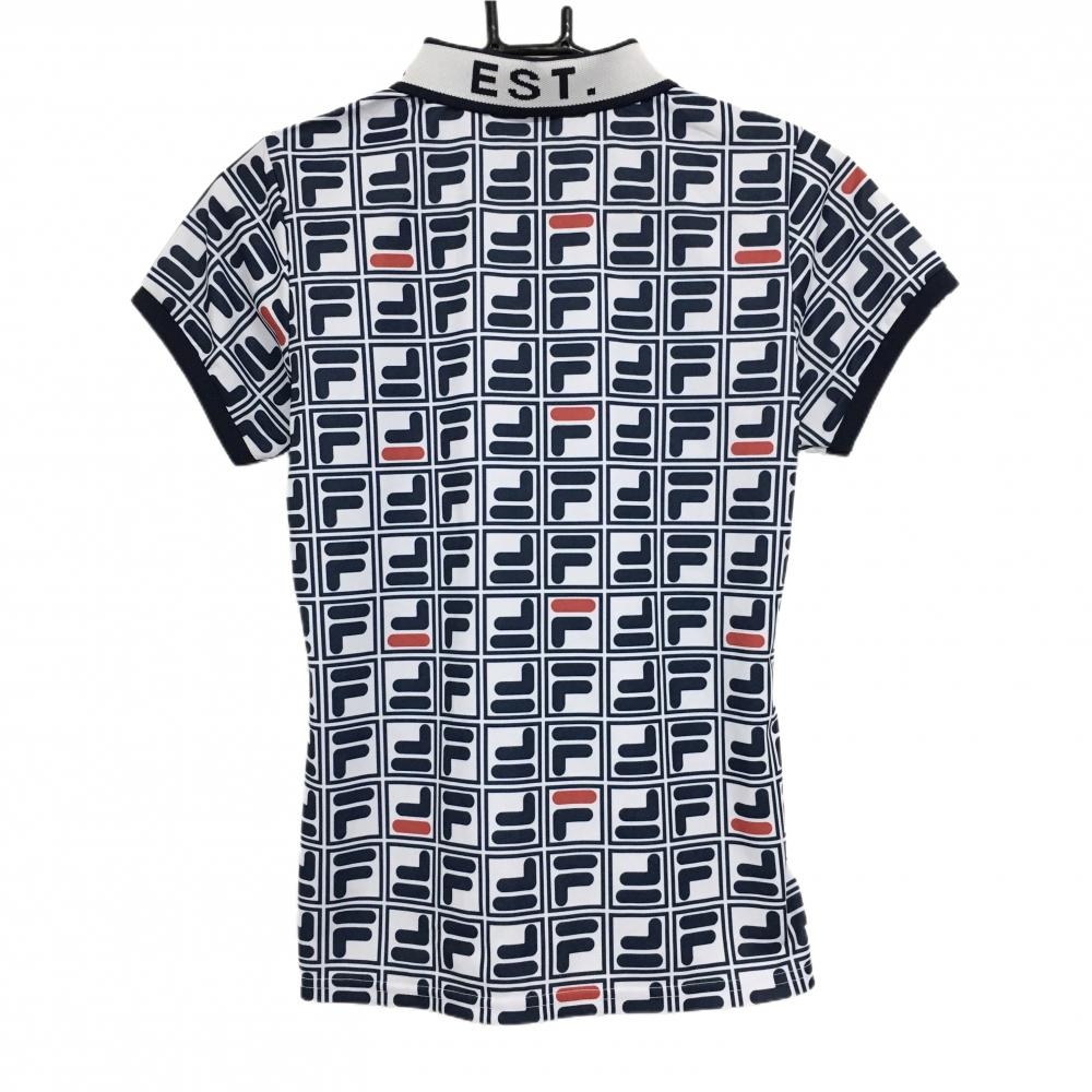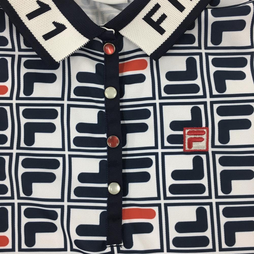 【超美品】フィラゴルフ 半袖ポロシャツ 白×ネイビー ロゴ総柄 スナップボタン レディース M ゴルフウェア FILA GOLF