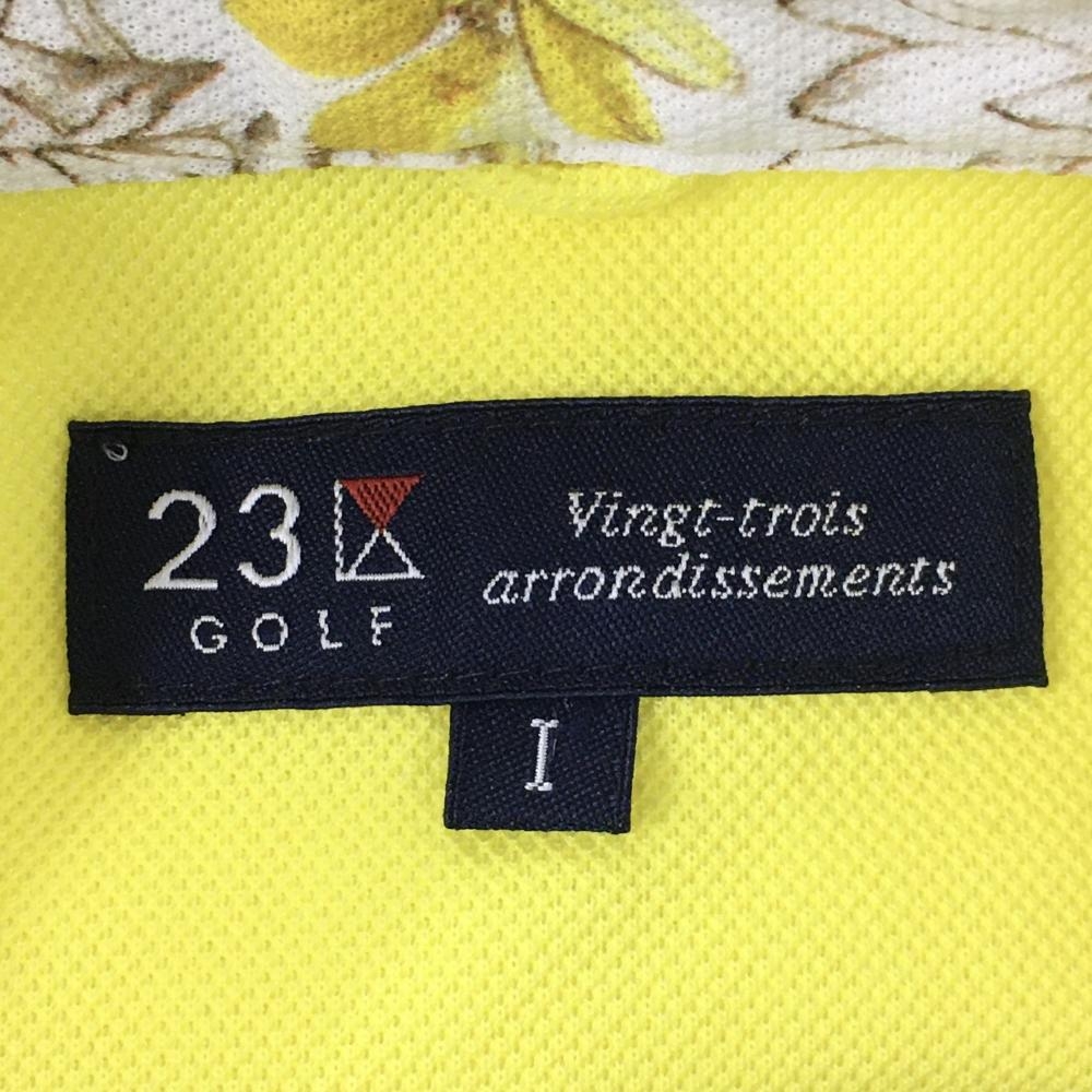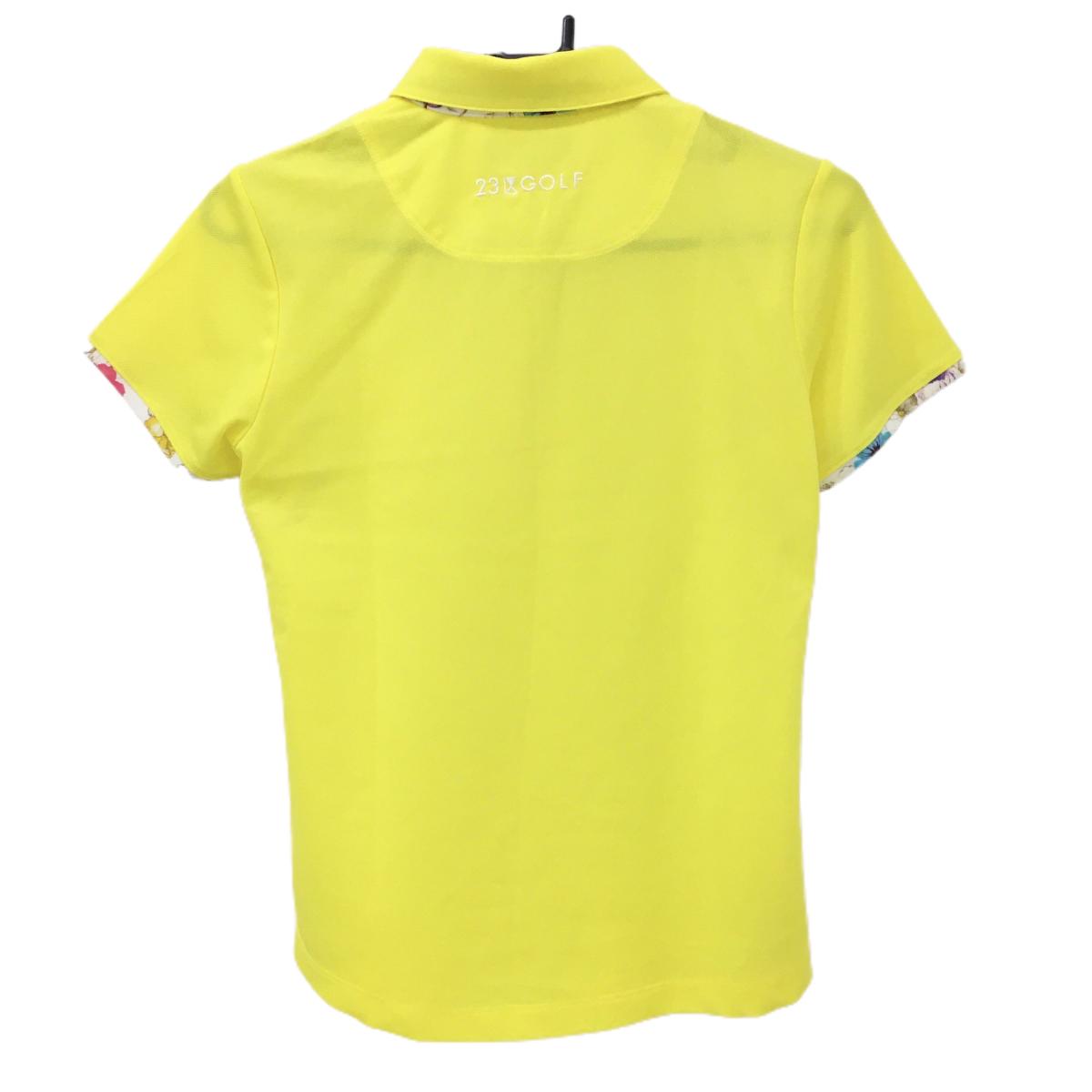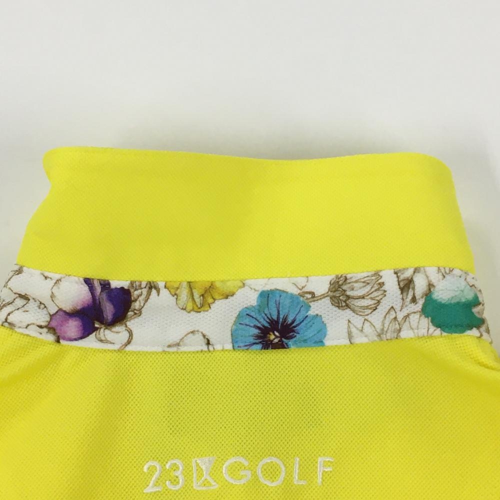 【超美品】23区ゴルフ 半袖ポロシャツ イエロー 襟裏・袖口花柄 レディース I(M) ゴルフウェア 23区