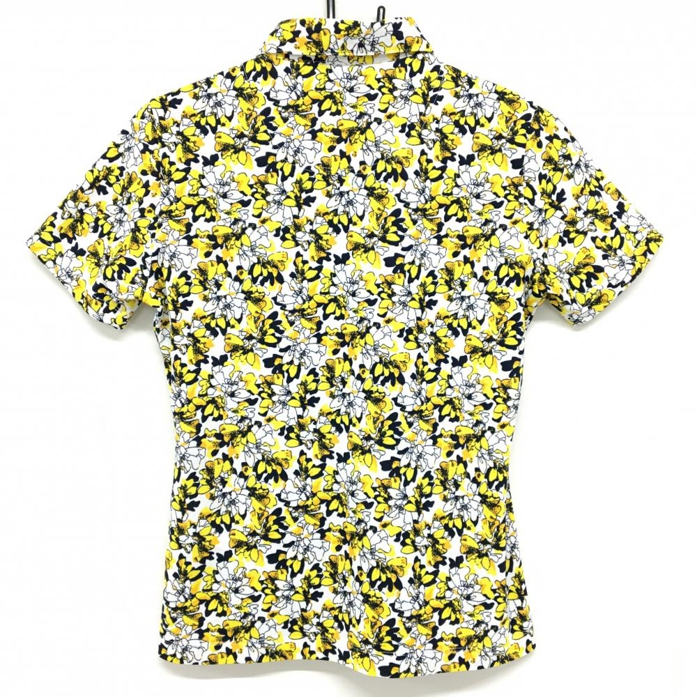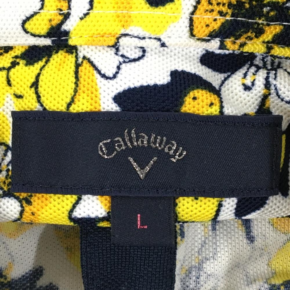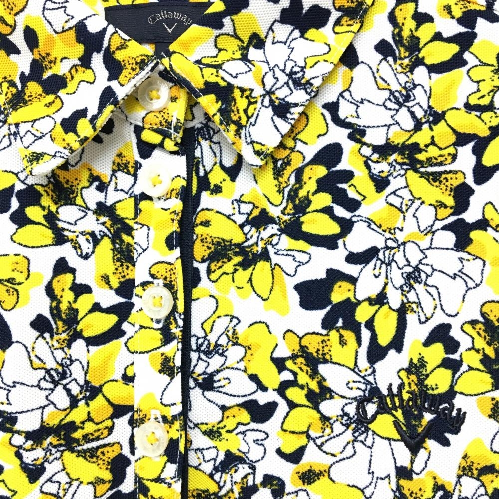 【超美品】キャロウェイ 半袖ポロシャツ 白×イエロー×黒 花柄 レディース L ゴルフウェア Callaway