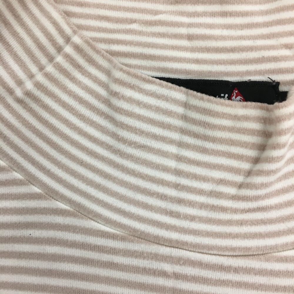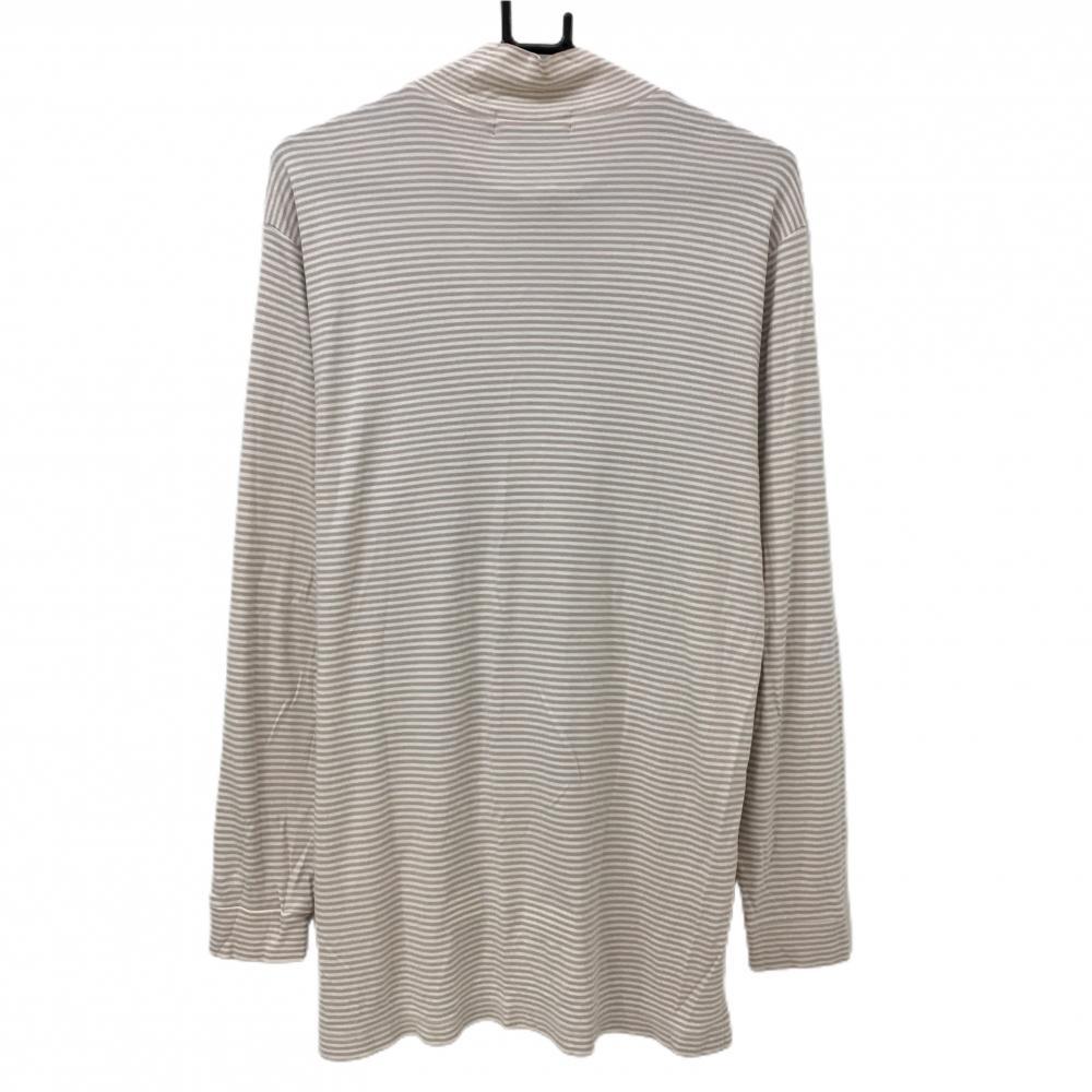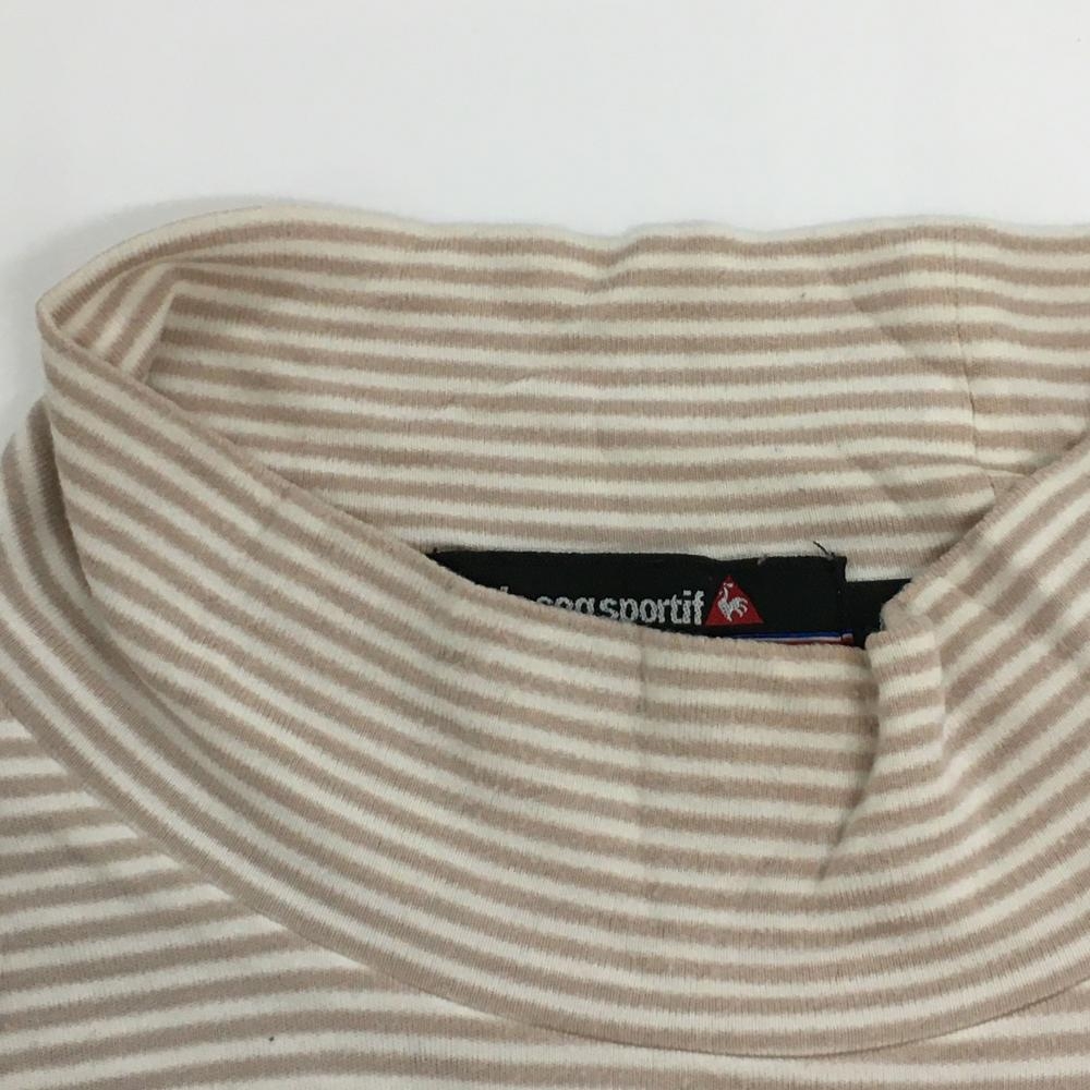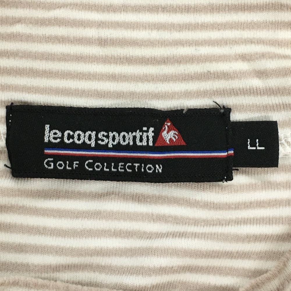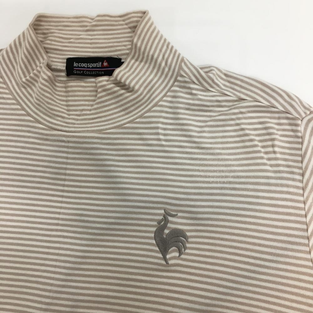 ルコックゴルフ 長袖ハイネックシャツ 白×グレーベージュ系 ボーダー 胸ロゴ刺しゅう メンズ LL ゴルフウェア le coq sportif