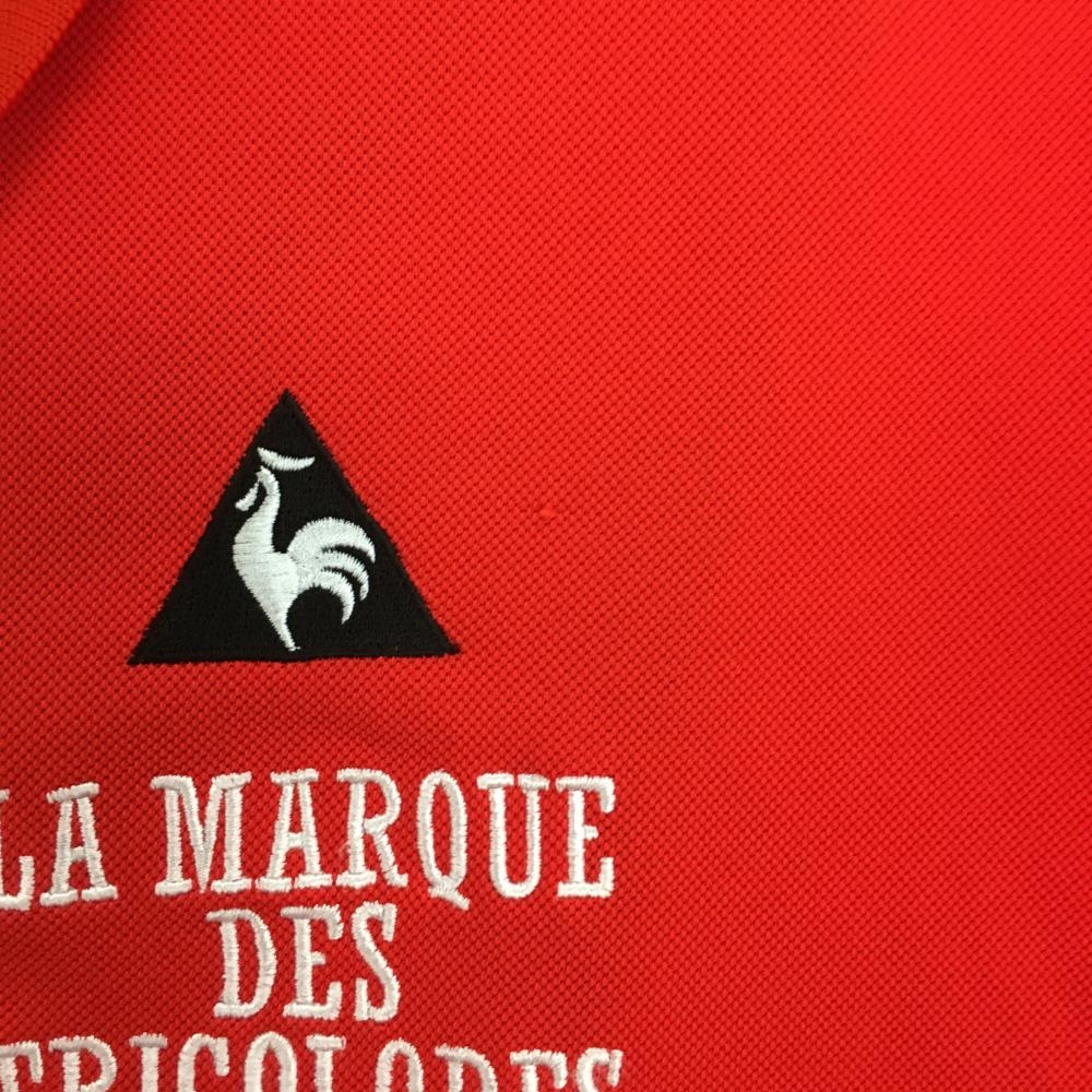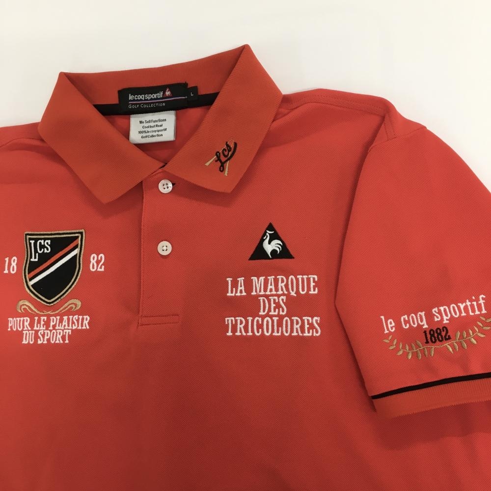 【美品】ルコックゴルフ 半袖ポロシャツ レッド×黒 袖口ライン 刺しゅう多数 メンズ L ゴルフウェア le coq sportif