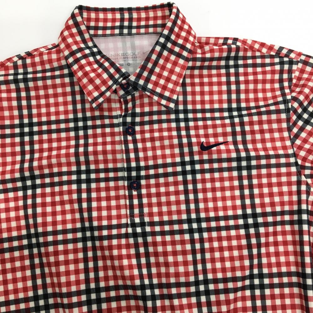 【超美品】ナイキ 半袖ポロシャツ レッド×黒×白 チェック メンズ L ゴルフウェア NIKE